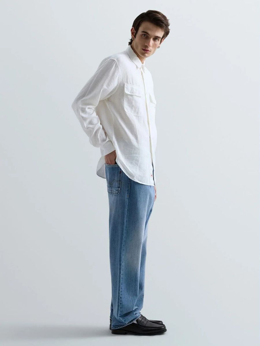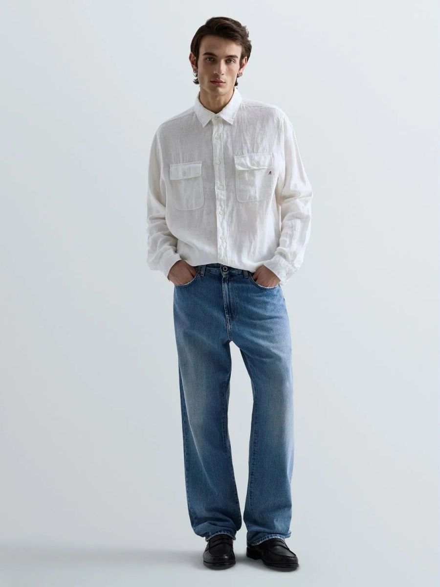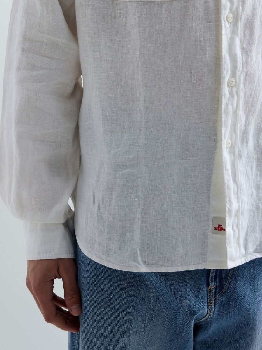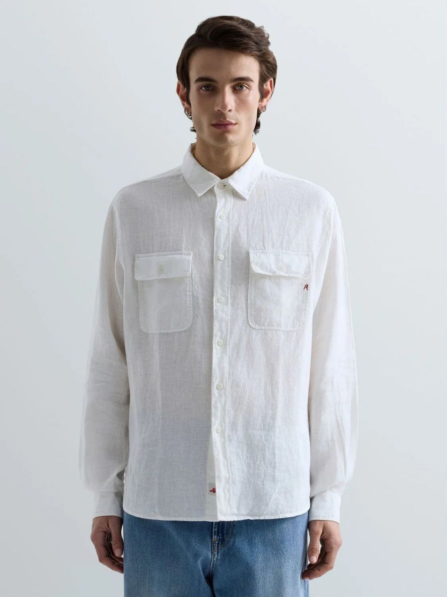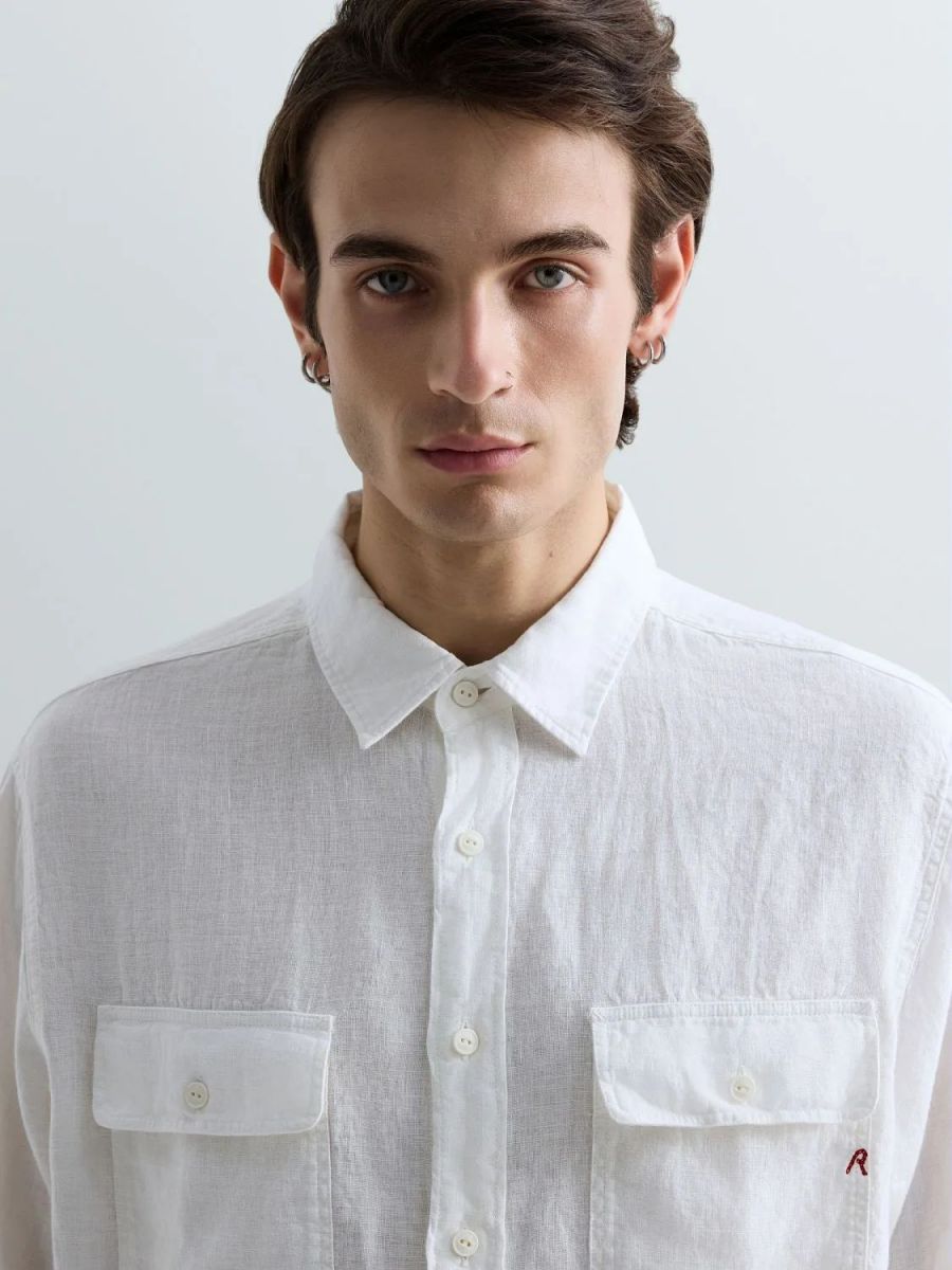 Camicia dalla vestibilità regolare realizzata in puro lino tinto in capo dal design pulito e versatile. Il modello a maniche lunghepresenta un orlo stondato e due taschini frontali con patta e bottone, uno dei quali reca l'iconico ricamo R, espressione del DNA Replay. Chiusura frontale con bottoni.