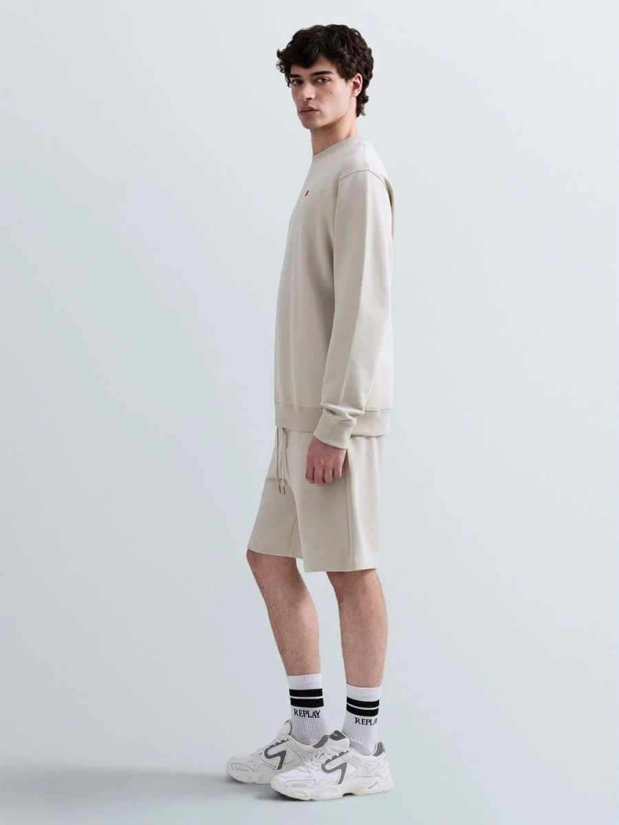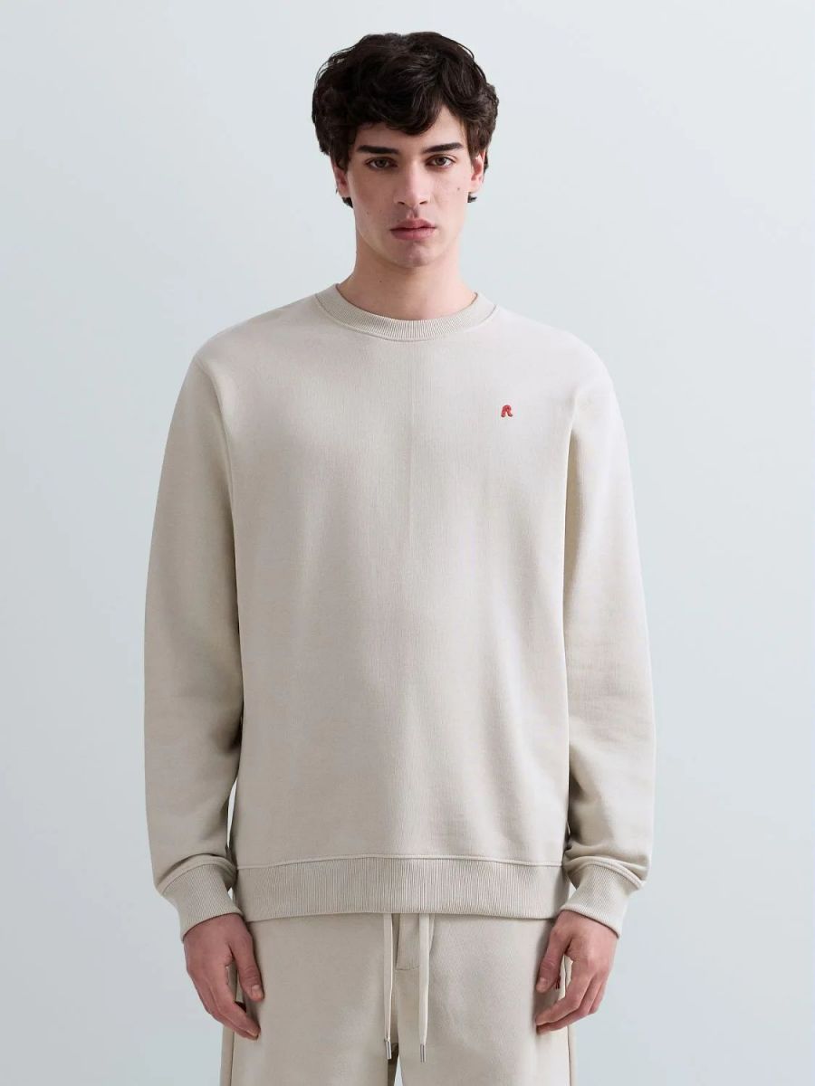 Felpa dalla vestibilità regolare realizzata in puro cotone terry con girocollo, polsini e fondo capo lavorati a costine. Il modelloa maniche lunghe è rifinito con l'iconico ricamo R in rosso sul petto e con l'etichetta a bandierina rossa con lettering Replay applicata a fondo capo sul retro.