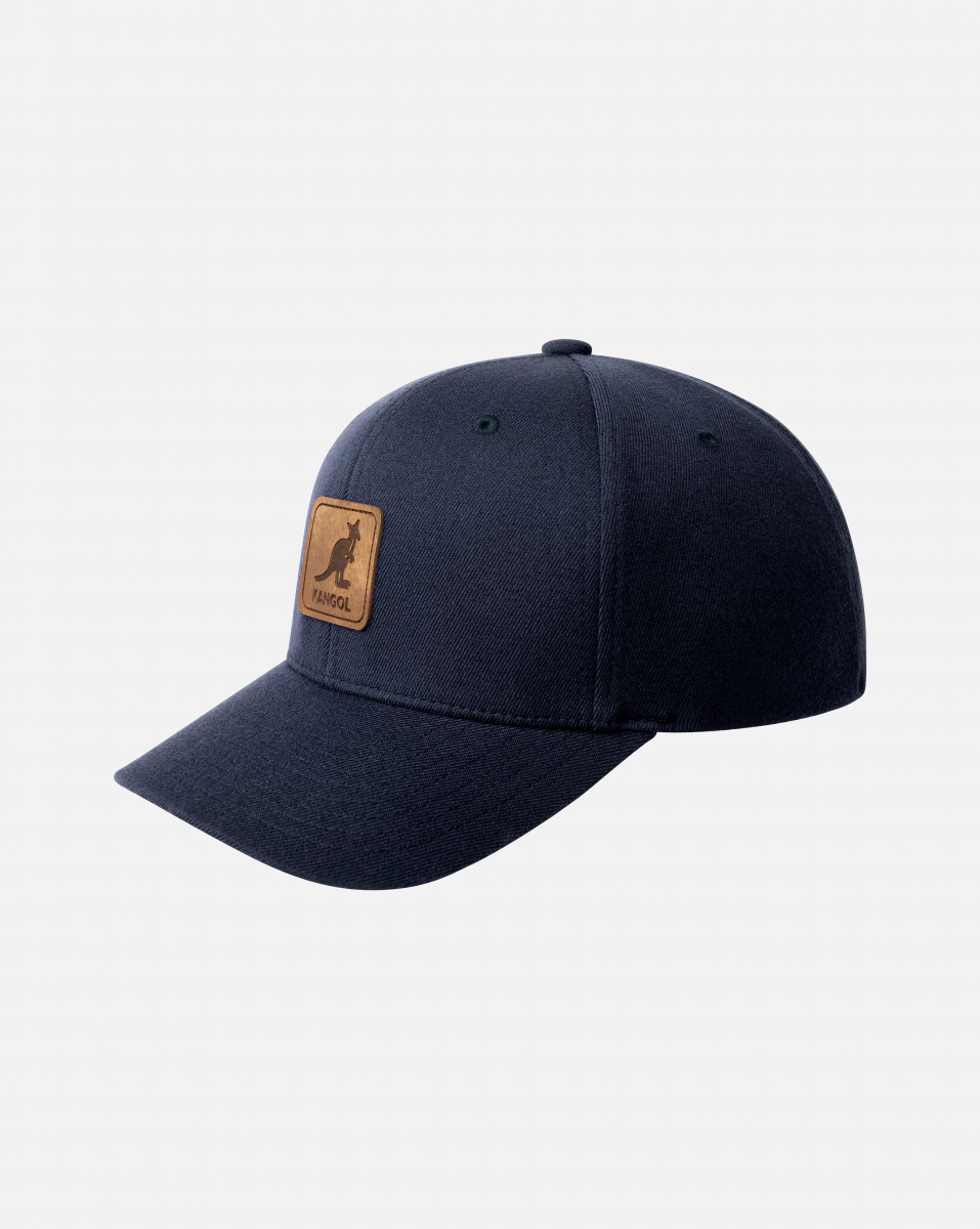 CAPPELLO KANGOL K5441 LEATHER PATCH FLEXFIT BB NV411 NAVY KANGOL