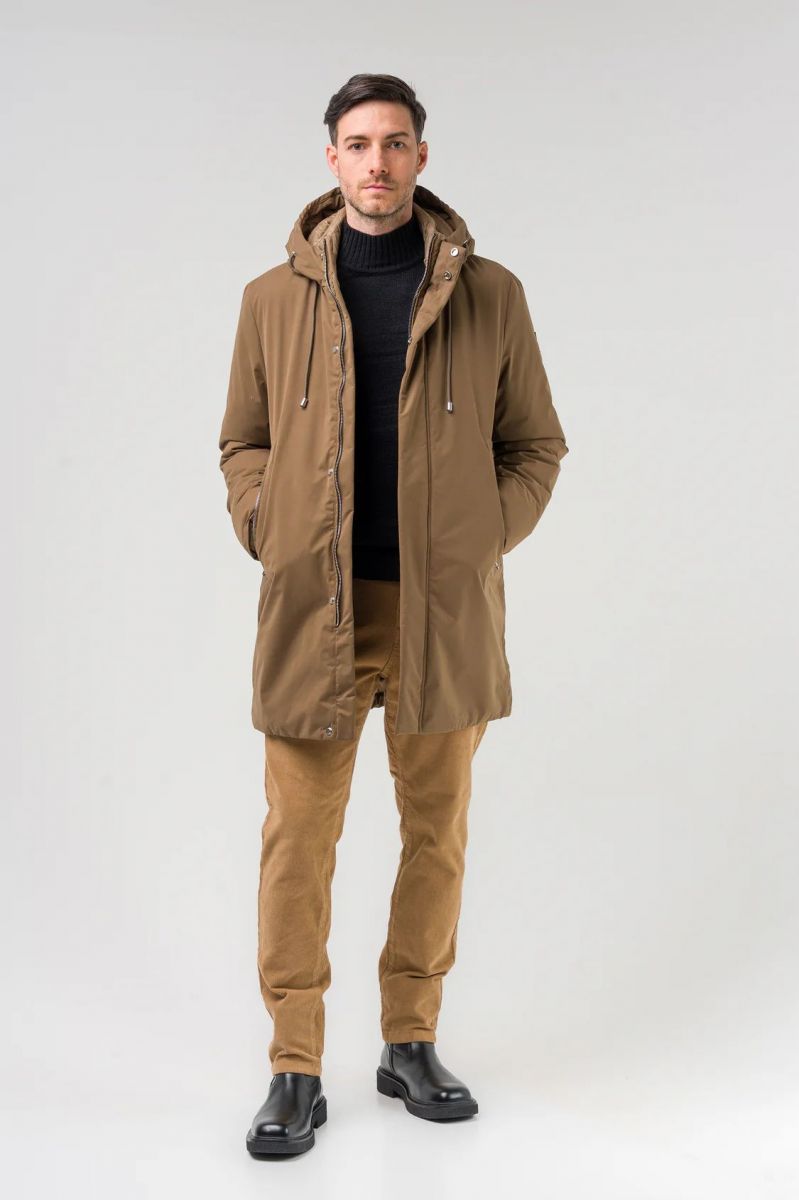 Questo parka lungo con cappuccio fisso offre protezione water resistant nelle giornate umide