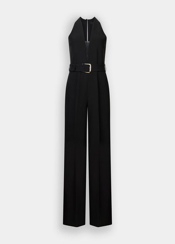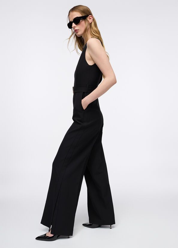 Tuta in tessuto tecnico stretch dettaglio in tulle scollo a v sorretto da spalline 91%pl 9%ea