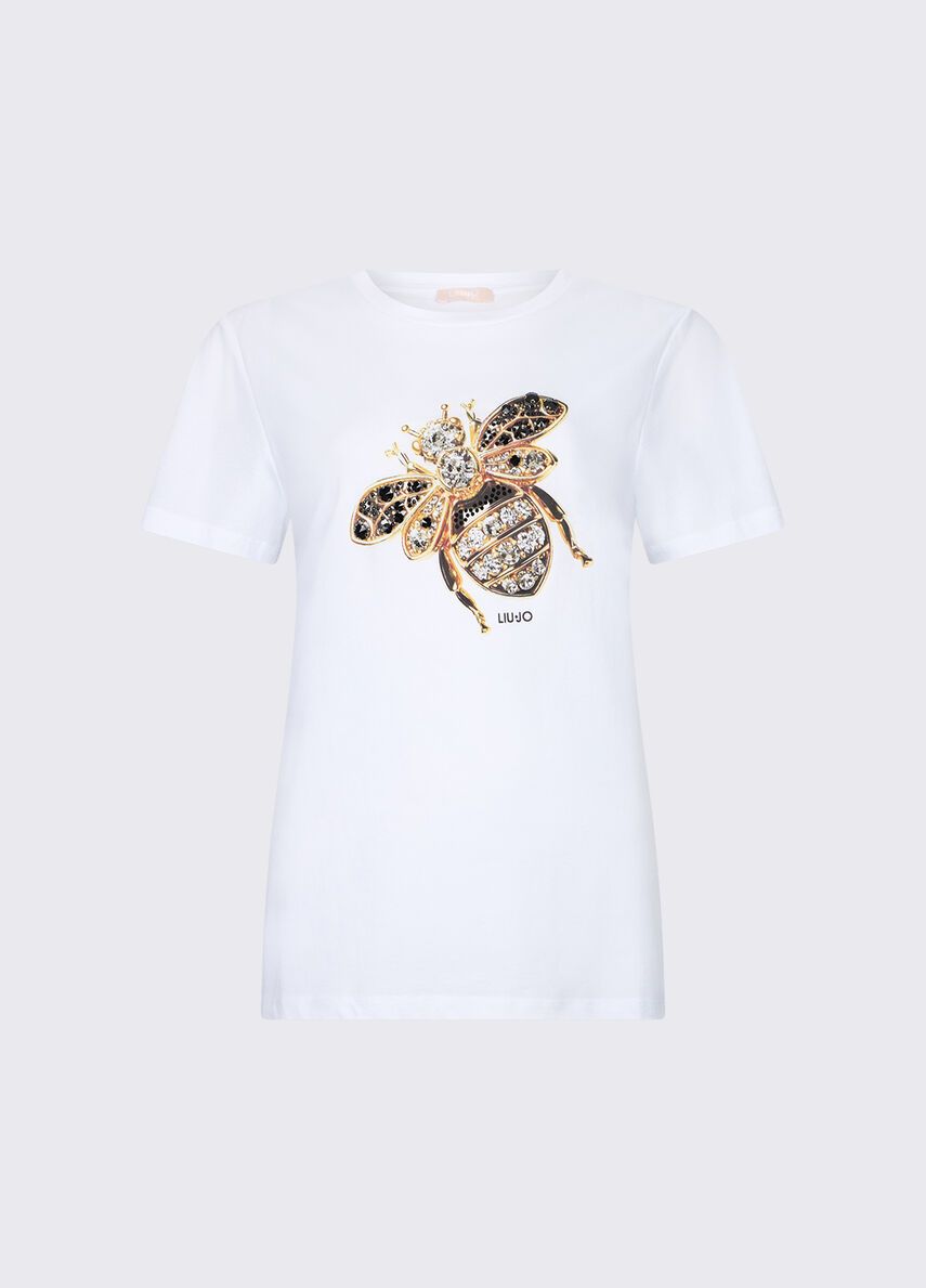 T-shirt in jersey di cotonestampa decorativa con applicazioni 100%co