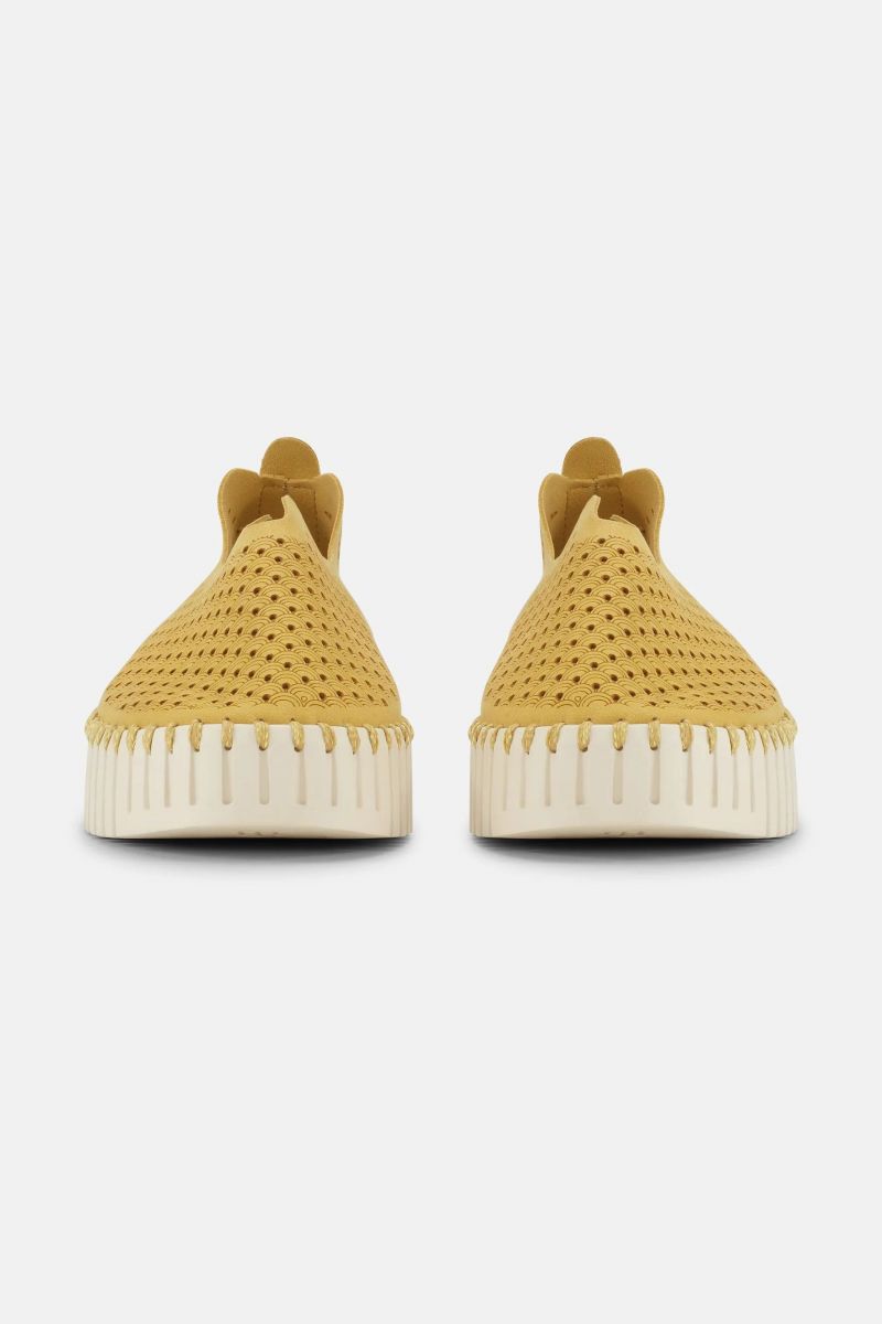 Una versione rivisitata del nostro modello più venduto, queste ballerine Tulip con plateau uniscono altezza, comfort e stile in un design raffinato. Realizzate in microfibra riciclata con una splendida fantasia tagliata al laser, poggiano su una moderna versione con plateau della suola flessibile Tulip, che offre maggiore altezza senza compromettere leggerezza e comodità. Cucite con filo riciclato in tinta e senza colla, queste ballerine riflettono un approccio consapevole all'abbigliamento quotidiano. All'interno, una soletta morbidamente imbottita offre comfort duraturo e un delicato sostegno ad ogni passo. Ballerine Tulip, modello iconico, con suola a plateau rialzato. Tomaia in microfibra riciclata con eleganti dettagli tagliati al laser. Suola flessibile a piattaforma con motivo a tulipano, cucita con filo riciclato. Costruzione senza colla con finitura tono su tono Soletta morbida con supporto plantare e ammortizzazione per un comfort che dura tutto il giorno. Ideale per look quotidiani, viaggi ed eleganza informale. Composizione: 60% Nylon, 40% Poliuretano Suola: 75% Gomma naturale, 25% Gomma riciclata Soletta: 60% EVA, 40% Pelle scamosciata di maiale