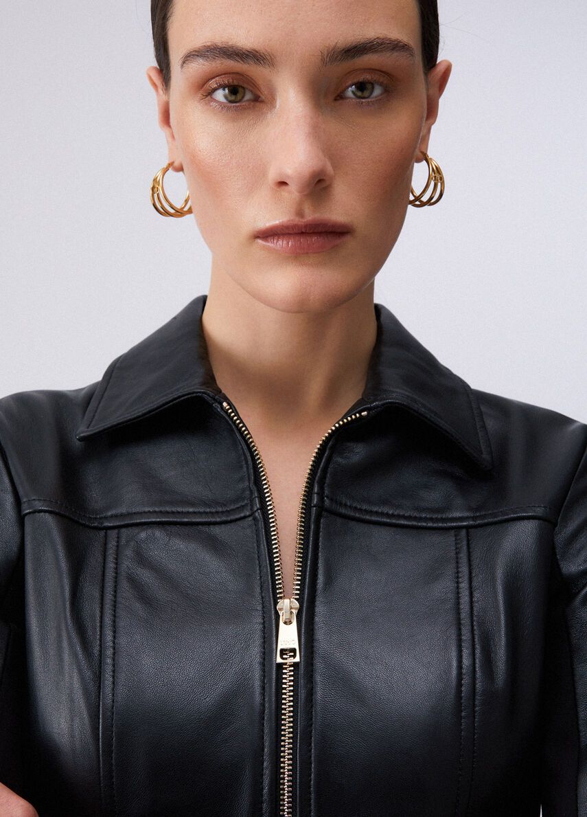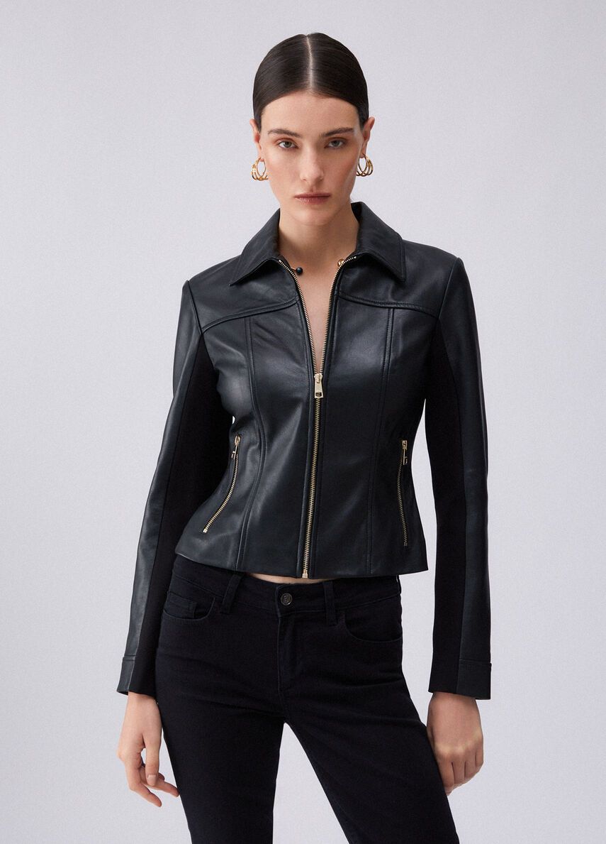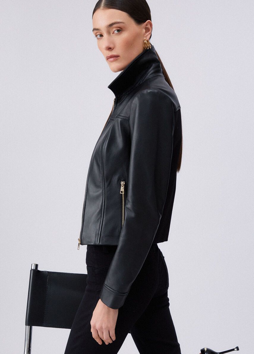 Giacca in vera pelleslim fitcolletto classicocomode tasche 100%pelle di agnello