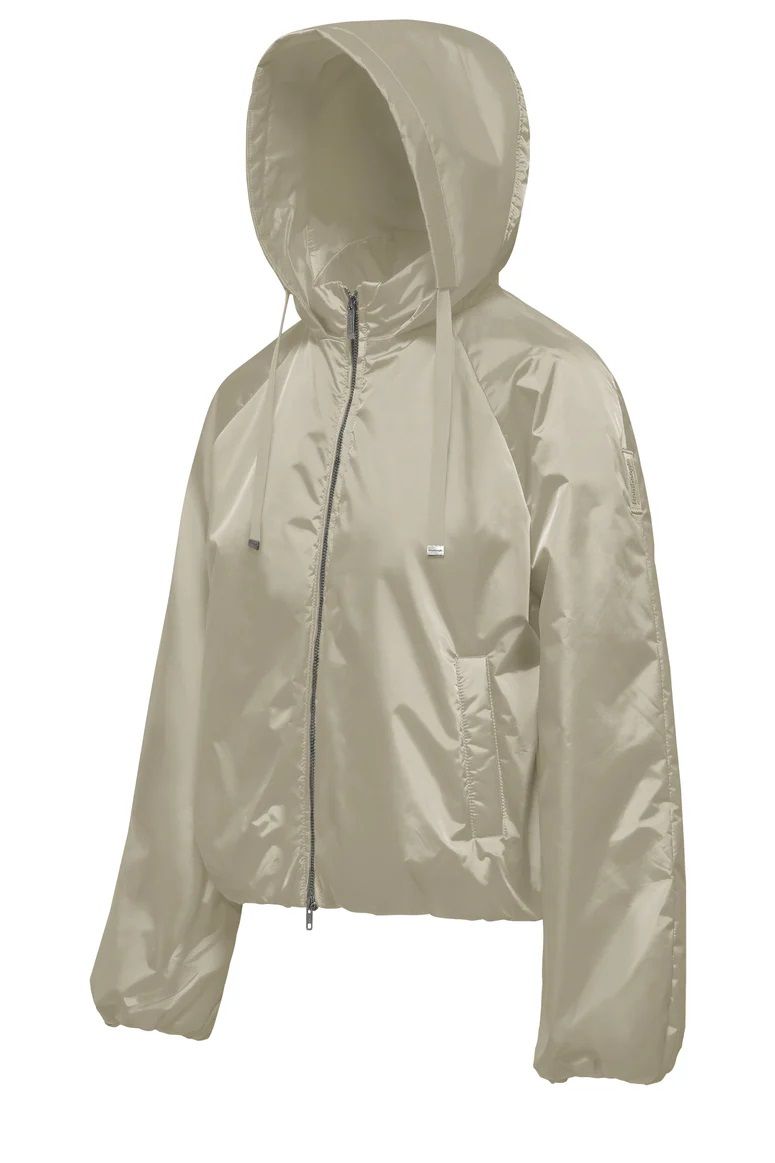 Giubbino tessuto lucido cappuccio fisso imbottitura sintetica leggera tessuto water resistant e windproof 100%pl