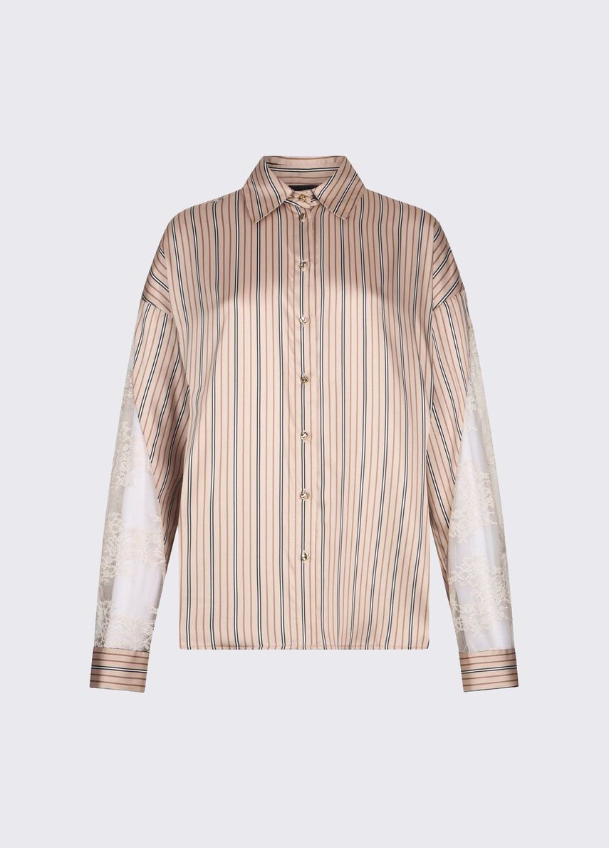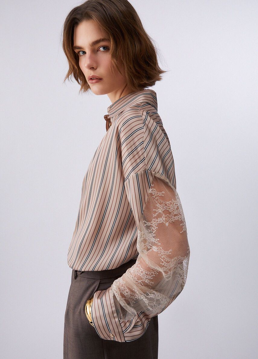 Camicia regular fit in twillmotivo rigatodettagli in pizzo sulle maniche100%pl