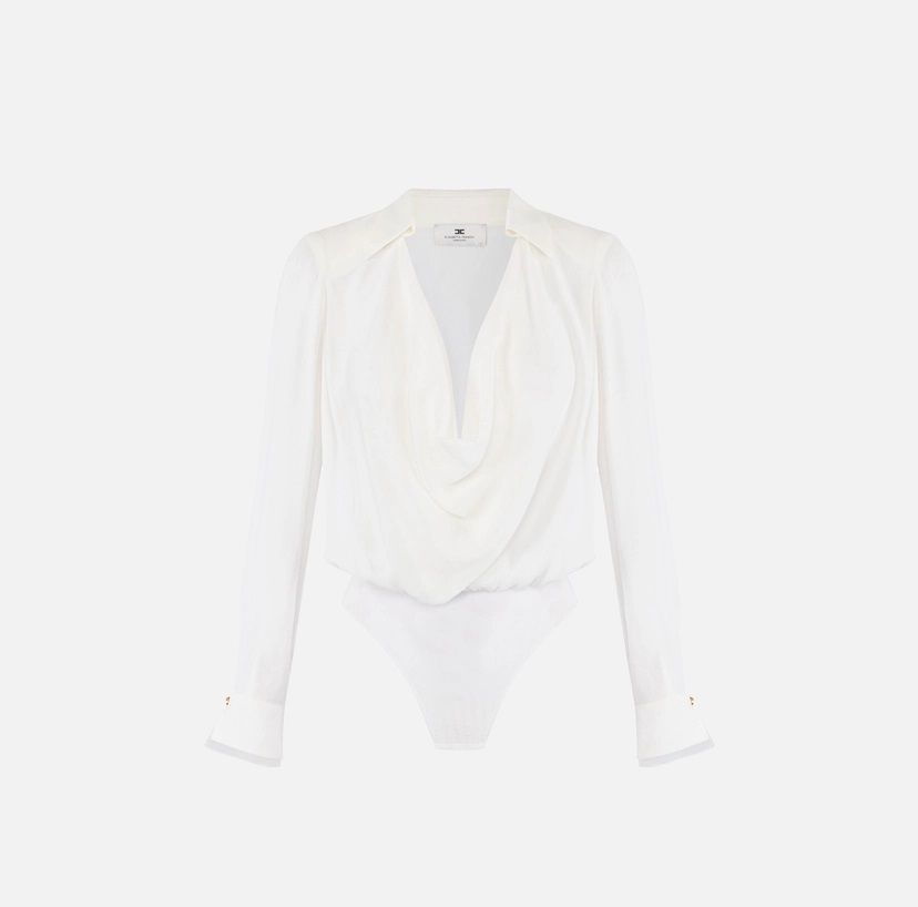 Body in georgette di viscosa dalla vestibilità regular ha spalle strutturate maniche lunghe e colletto a camicia 100%vi