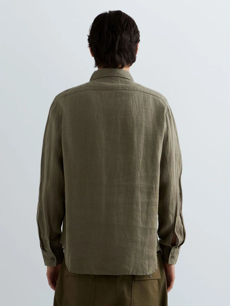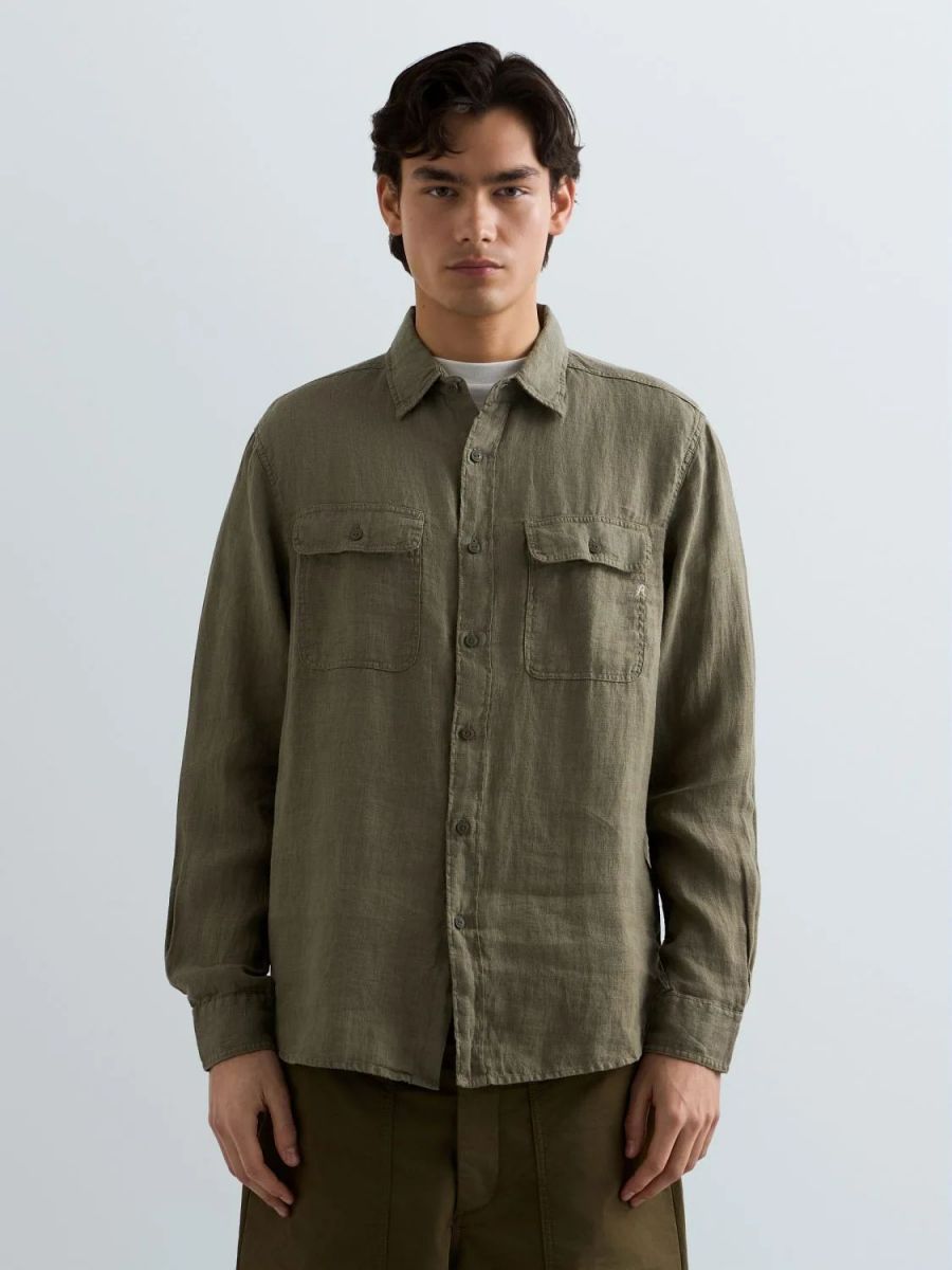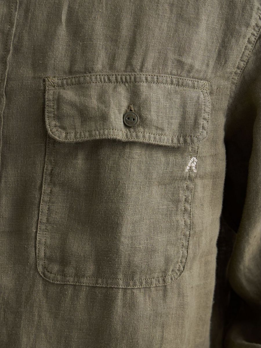 Camicia dalla vestibilità regolare realizzata in puro lino tinto in capo dal design pulito e versatile. Il modello a maniche lunghepresenta un orlo stondato e due taschini frontali con patta e bottone, uno dei quali reca l'iconico ricamo R, espressione del DNA Replay. Chiusura frontale con bottoni.