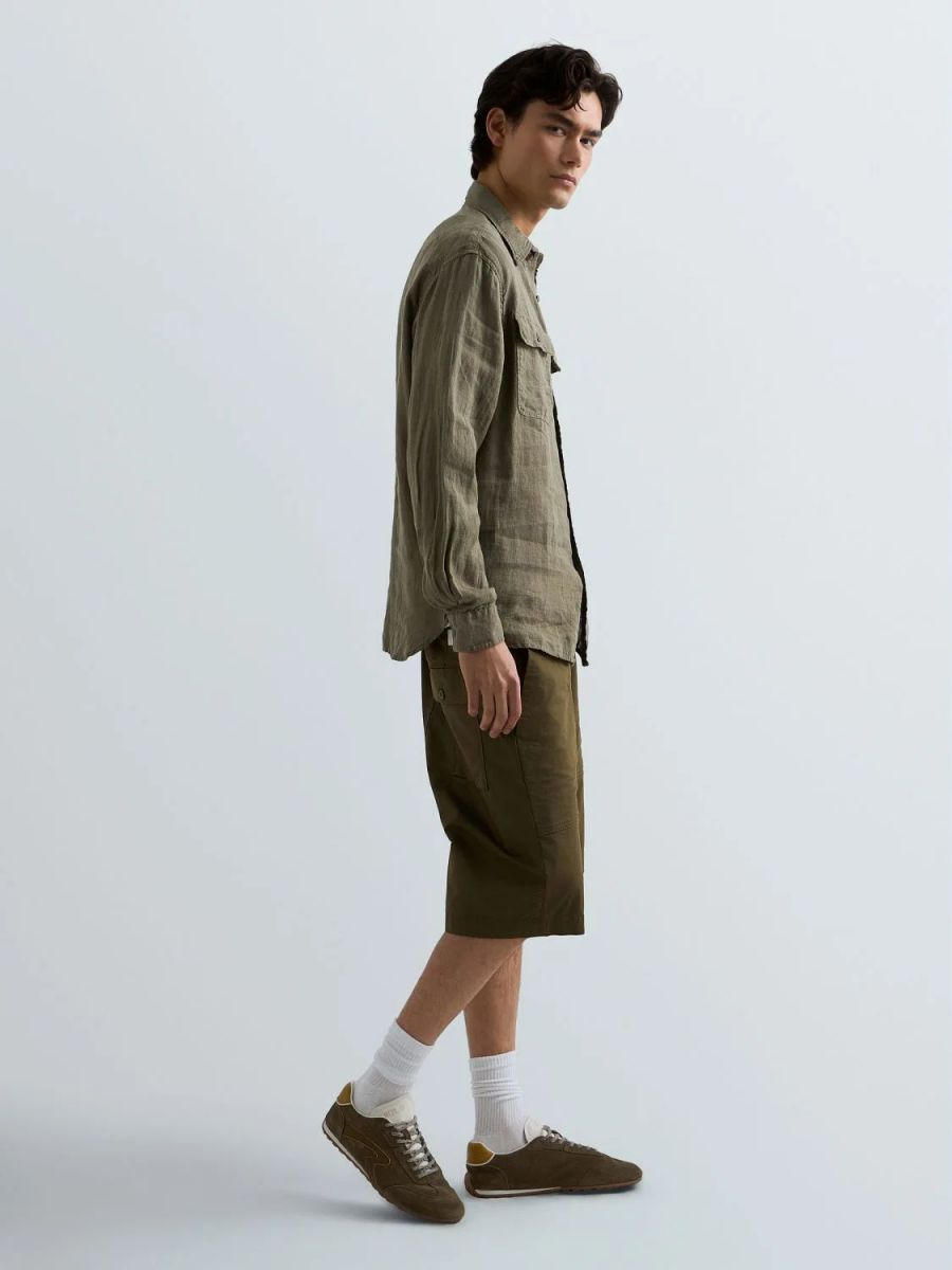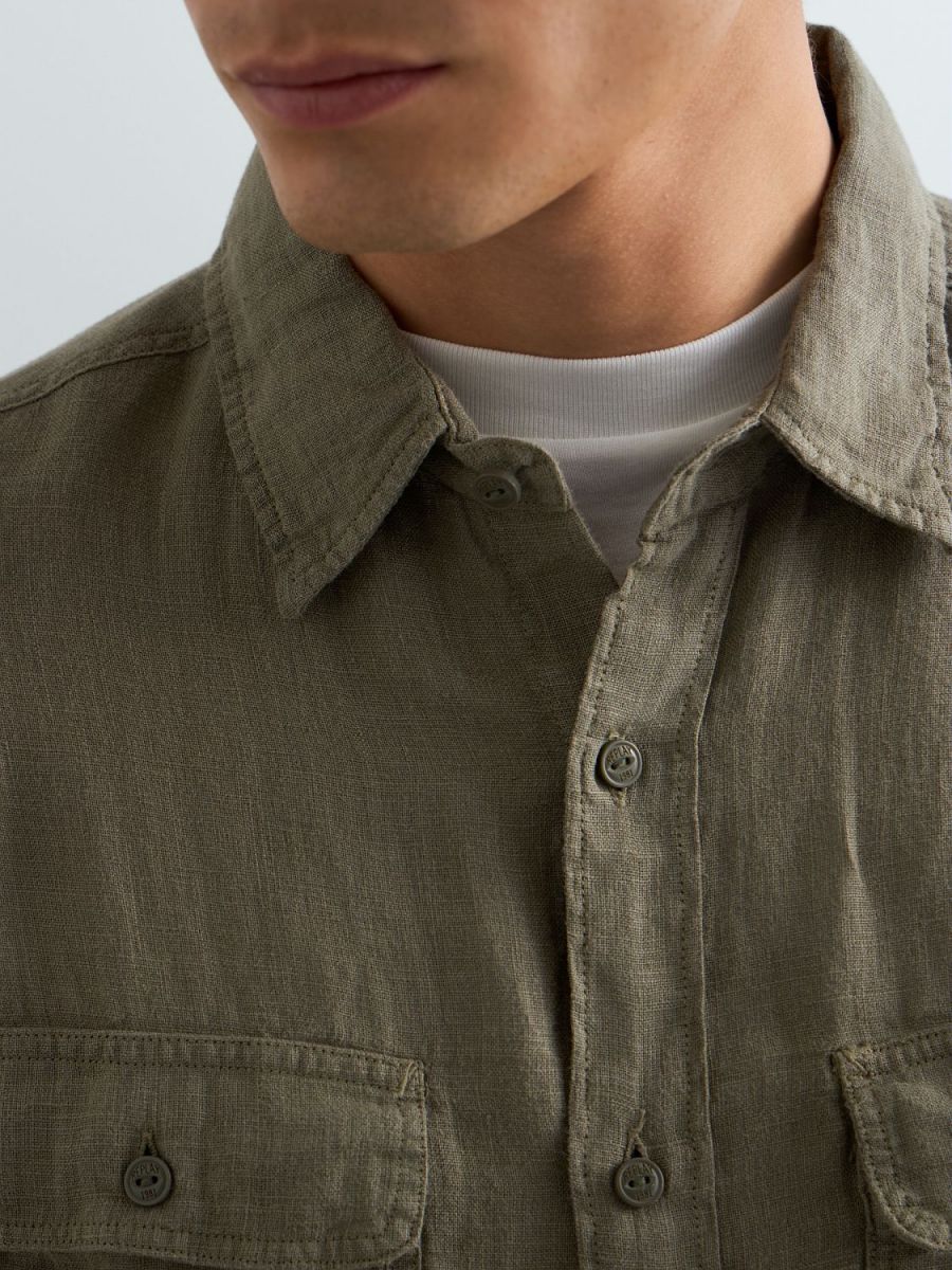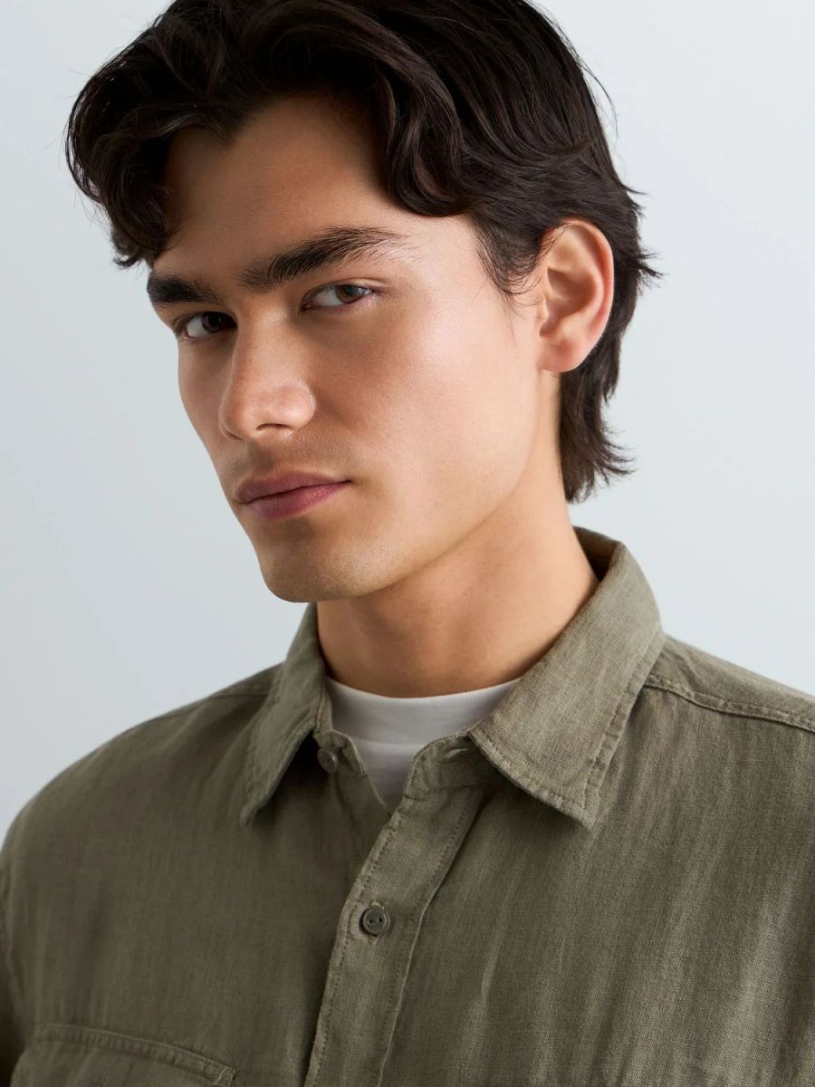 Camicia dalla vestibilità regolare realizzata in puro lino tinto in capo dal design pulito e versatile. Il modello a maniche lunghepresenta un orlo stondato e due taschini frontali con patta e bottone, uno dei quali reca l'iconico ricamo R, espressione del DNA Replay. Chiusura frontale con bottoni.