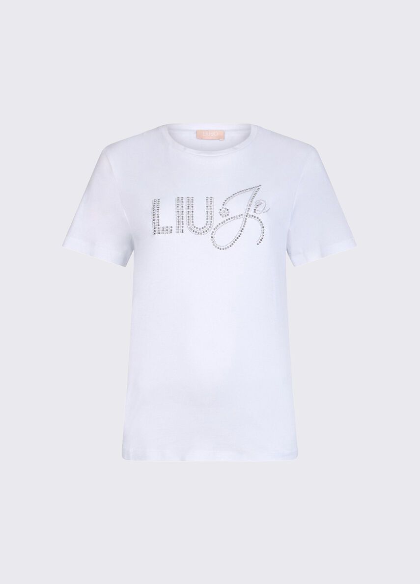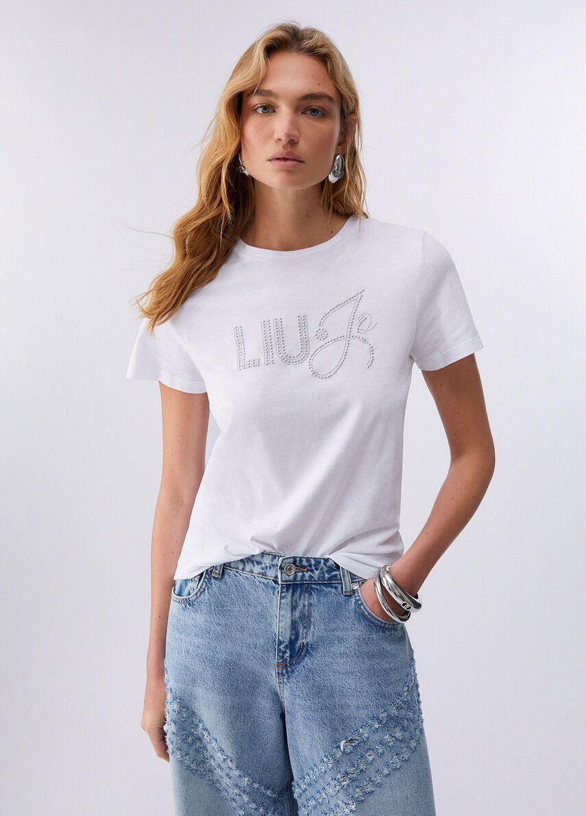 T-shirt in jersey di cotonegirocollomaniche corteapplicazioni gioiello 100%co