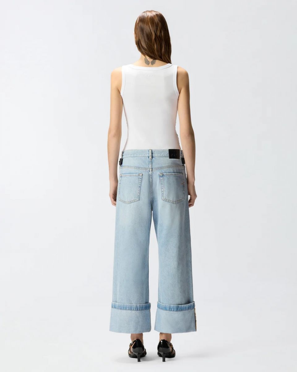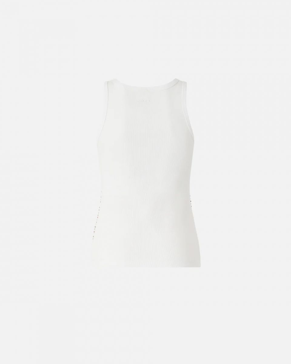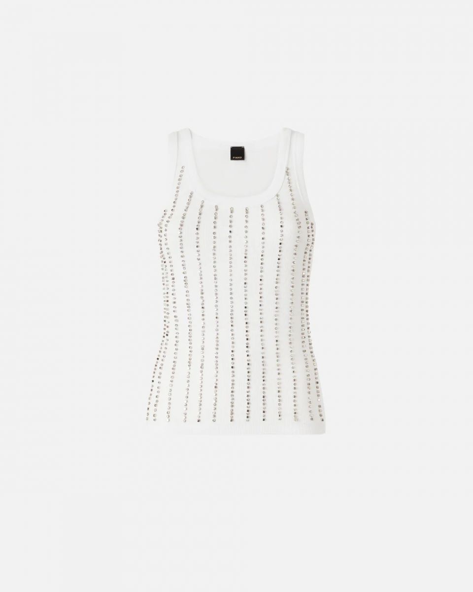 Top a canotta in misto cotone lavorato a costine sottili impreziosito sul davanti da piccole applicazioni gioiello disposte a righe verticali 65%co 30%pl 5%es