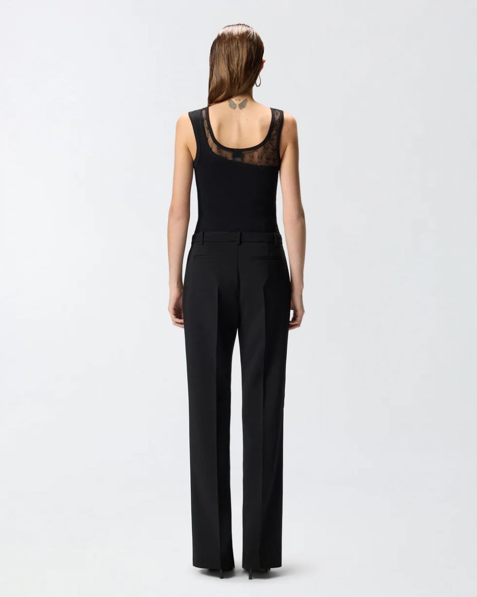 Top a canotta con scollo tondo realizzato in morbido cotone stretch lavorato a costine e caratterizzato da un inserto in pizzo 97%co 3%ea