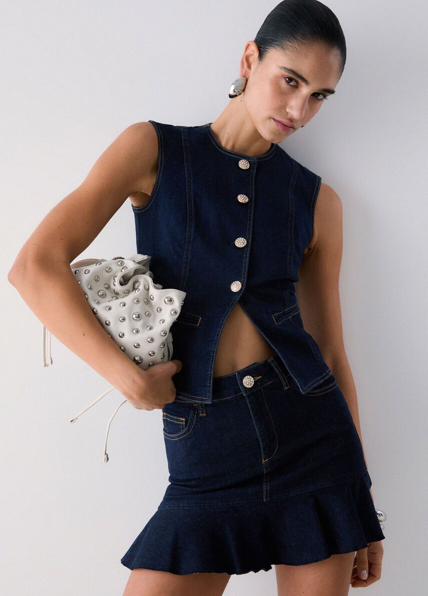 Gonna mini in denim di cotonecomode taschechiusura con zip e bottone 84%co 13%pl 3%ea