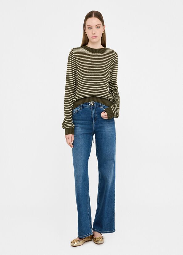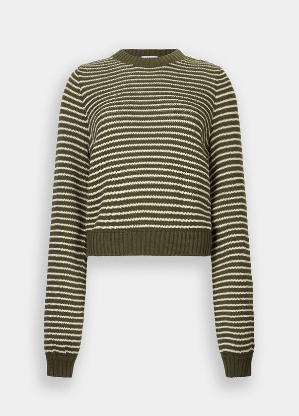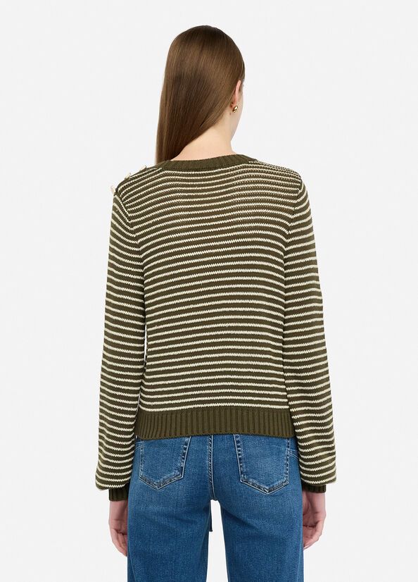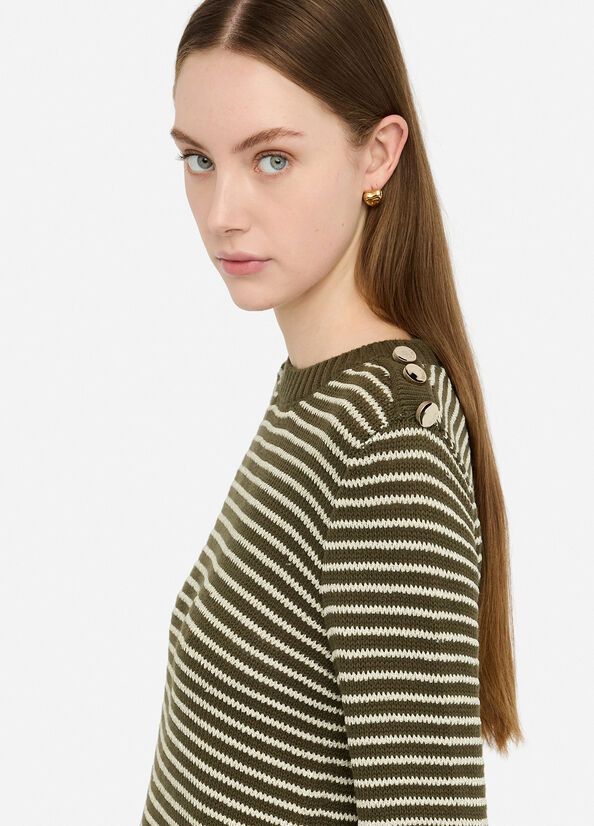 Maglia in misto lana e lurex®motivo a righebottoni sulla spallataglio girocollo 65%co 27%pl 8%plm