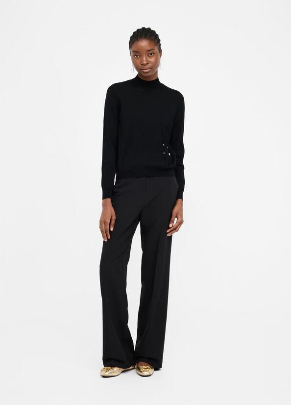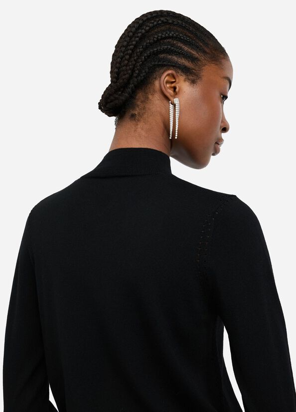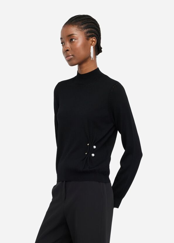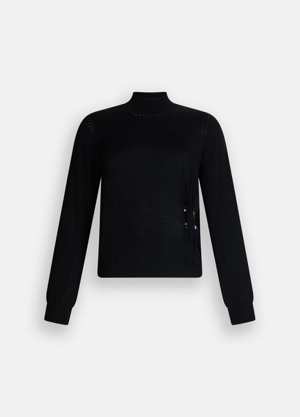 Maglia nerarealizzata in lanamotivo arricciato con perlecollo alto 100%wv