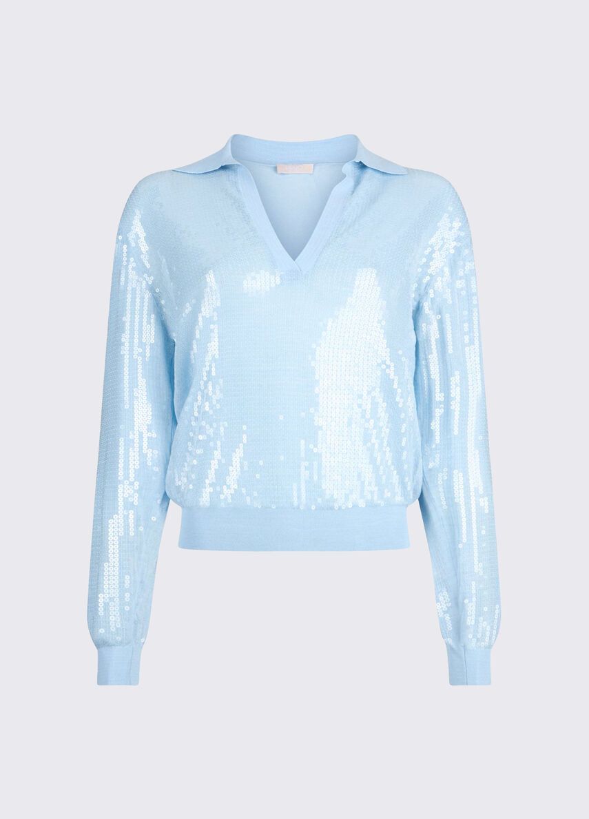 Maglia a maniche lunghecolletto con scollo a vpaillettes ricamatevestibilità regular 70%vi 30%pa