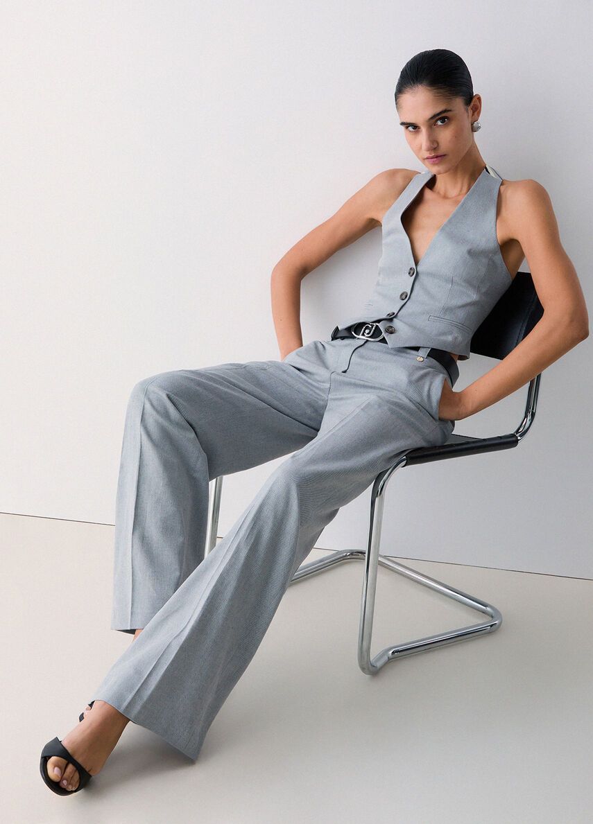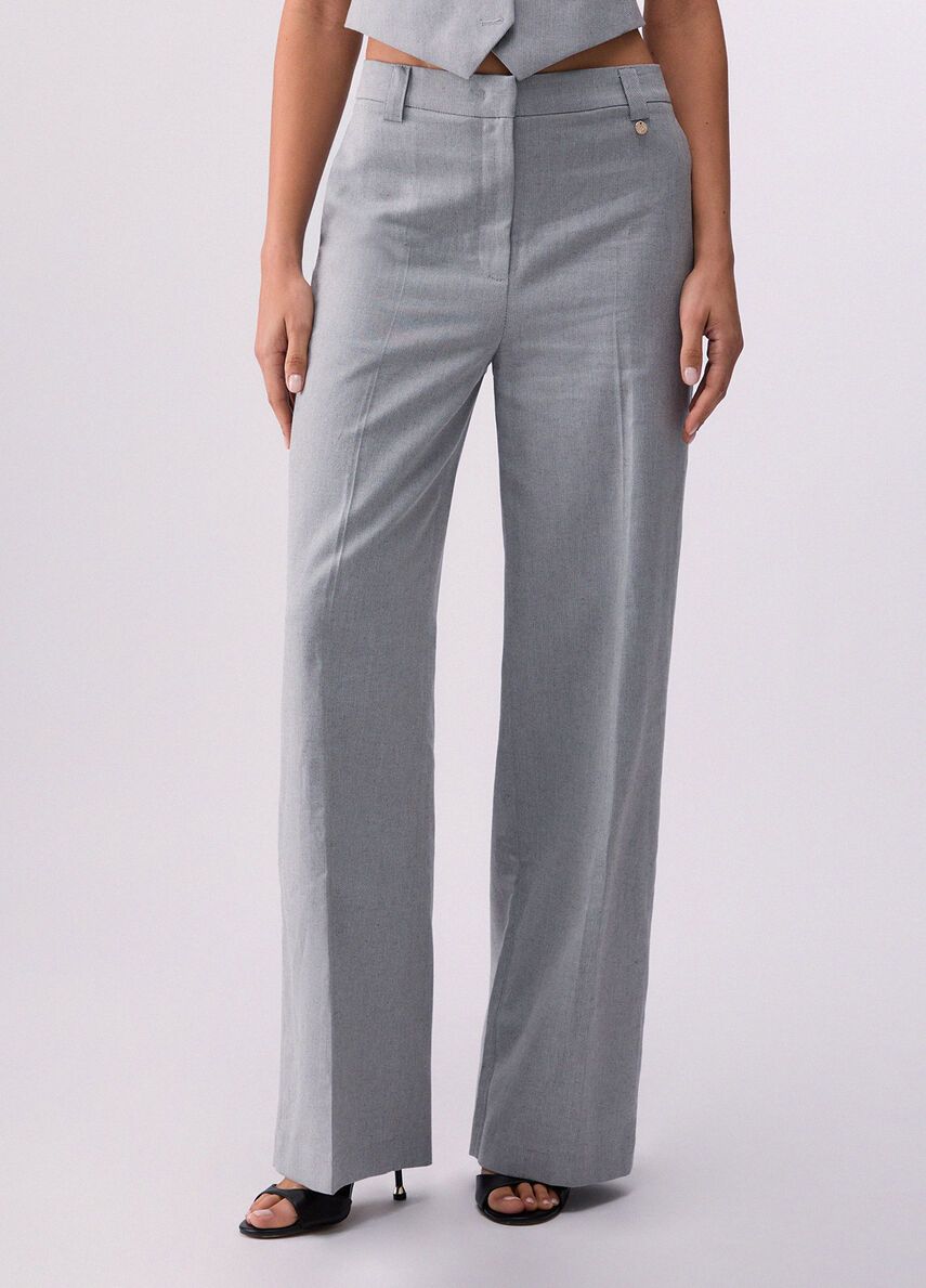 Pantalone straight in tela mélangecomode tascheelegante chiusura con gancetto metallico e zippassanti per cintura 49%co 21%vi 17%pl 13%li