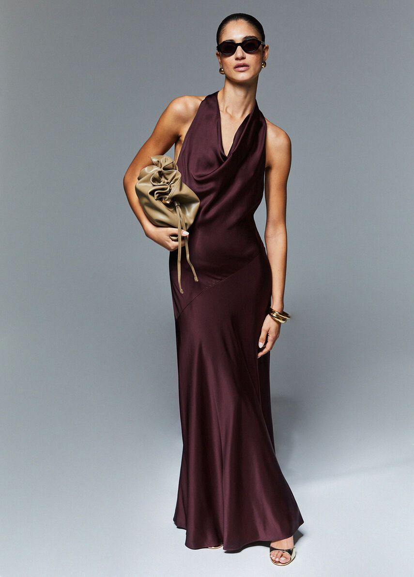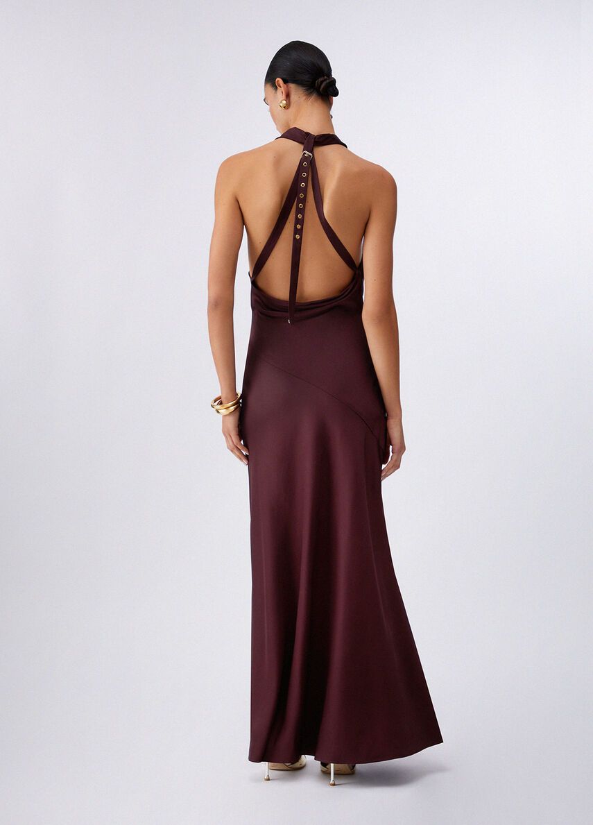 Abito lungo in raso di viscosascollo cratereincrocio sul dietro con fibbia decorativa 100%vi