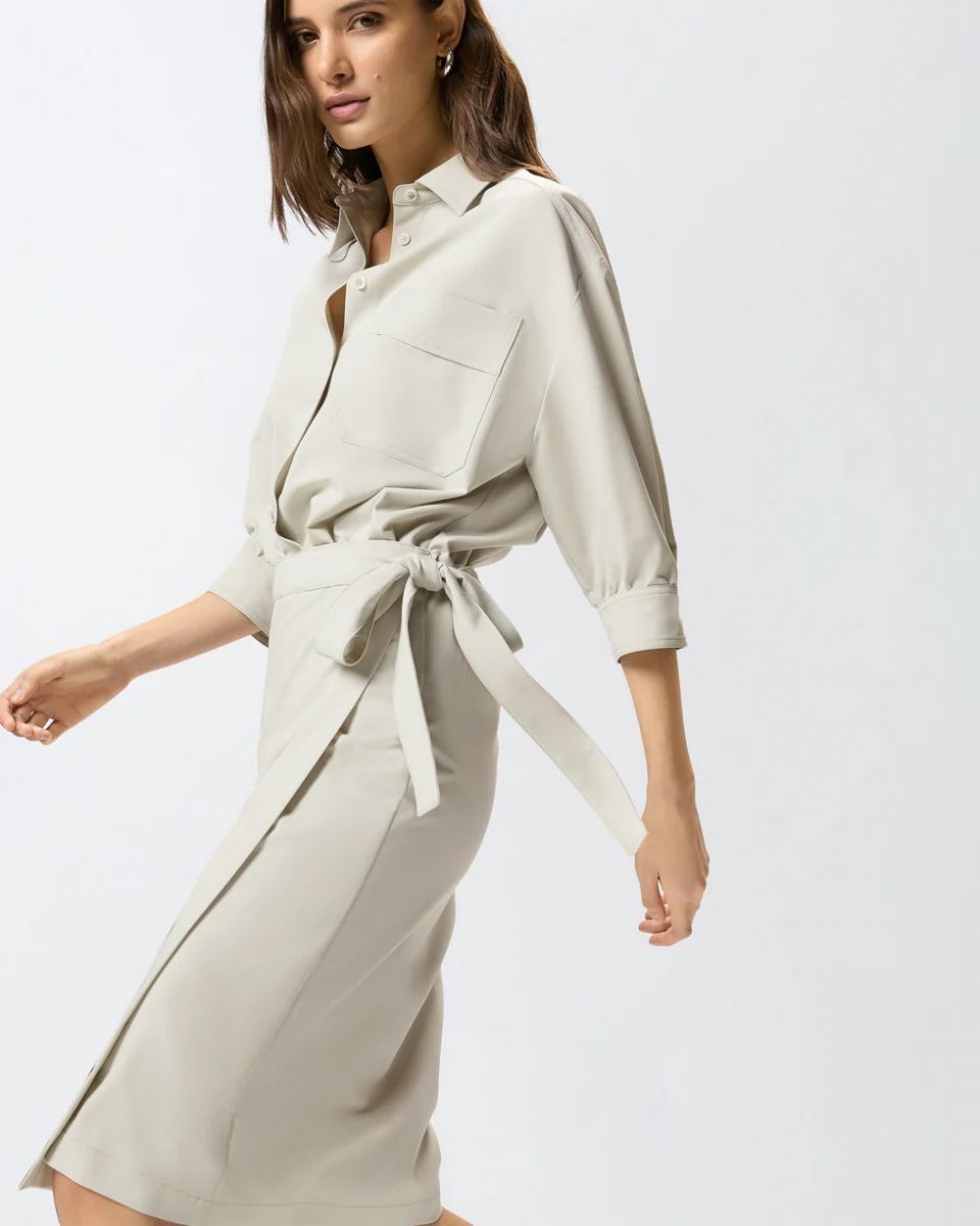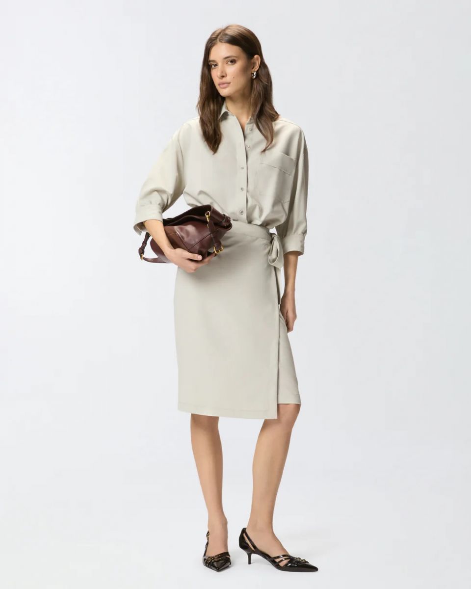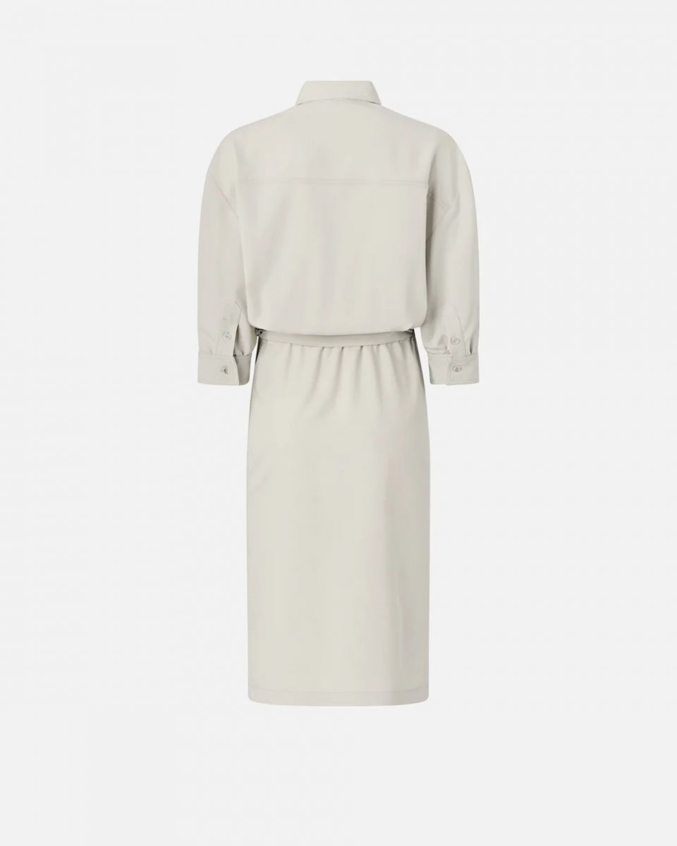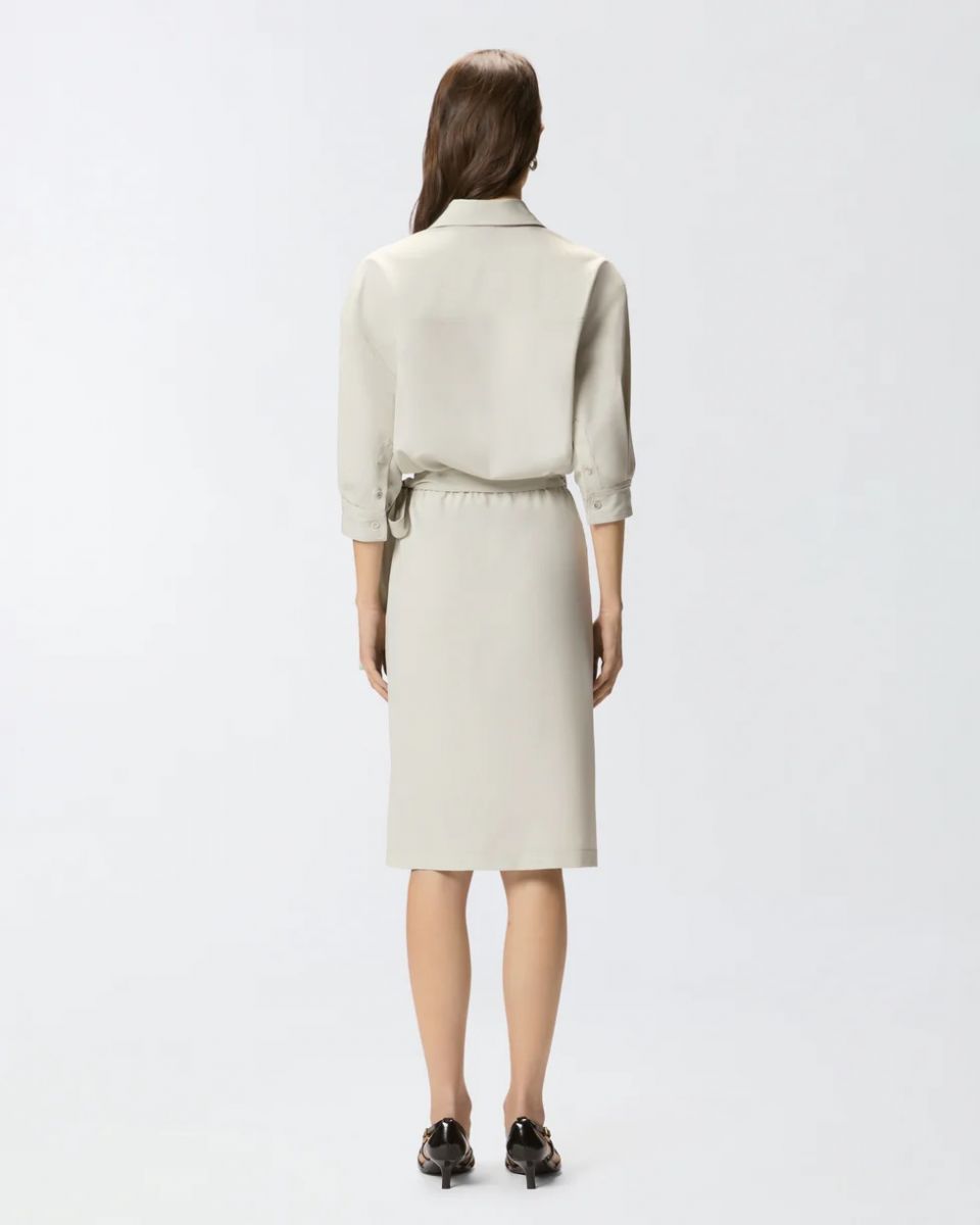 Abito midi realizzato in tessuto fluido di viscosa, ideale per accompagnare la figura senza costringere i movimenti 72%pl 23%vi 5%ea