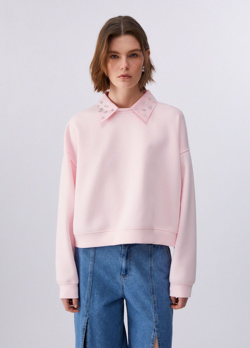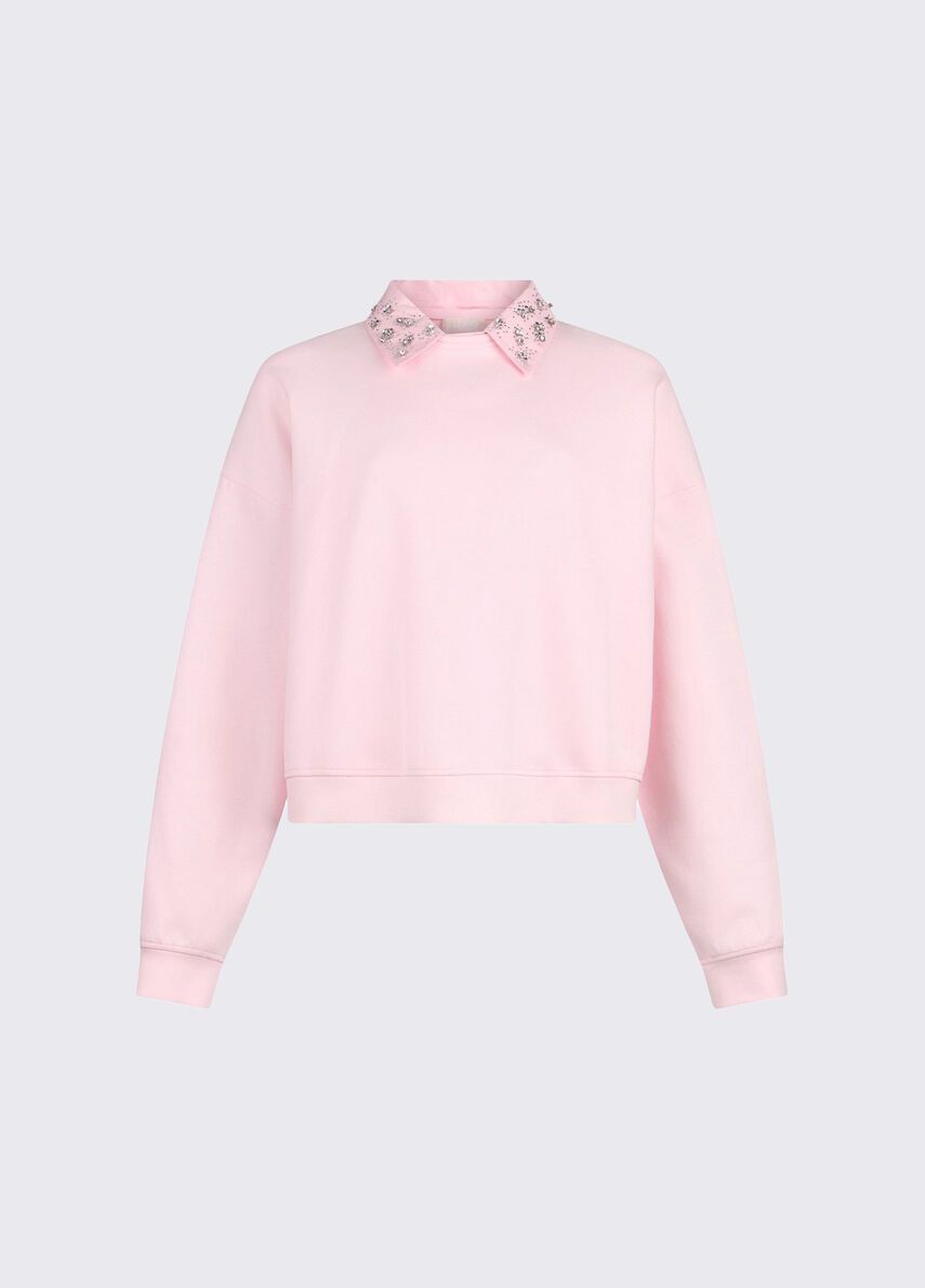 Felpa in misto cotonegirocollocolletto oxford removibilericami gioiello 80%co 15%pl 5%ea
