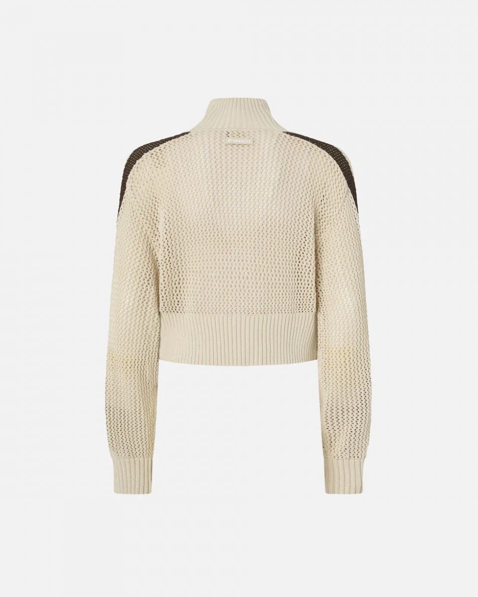 Felpa cropped realizzata in morbido e fresco misto cotone con lavorazione traforata effetto rete 62%co 38%ny