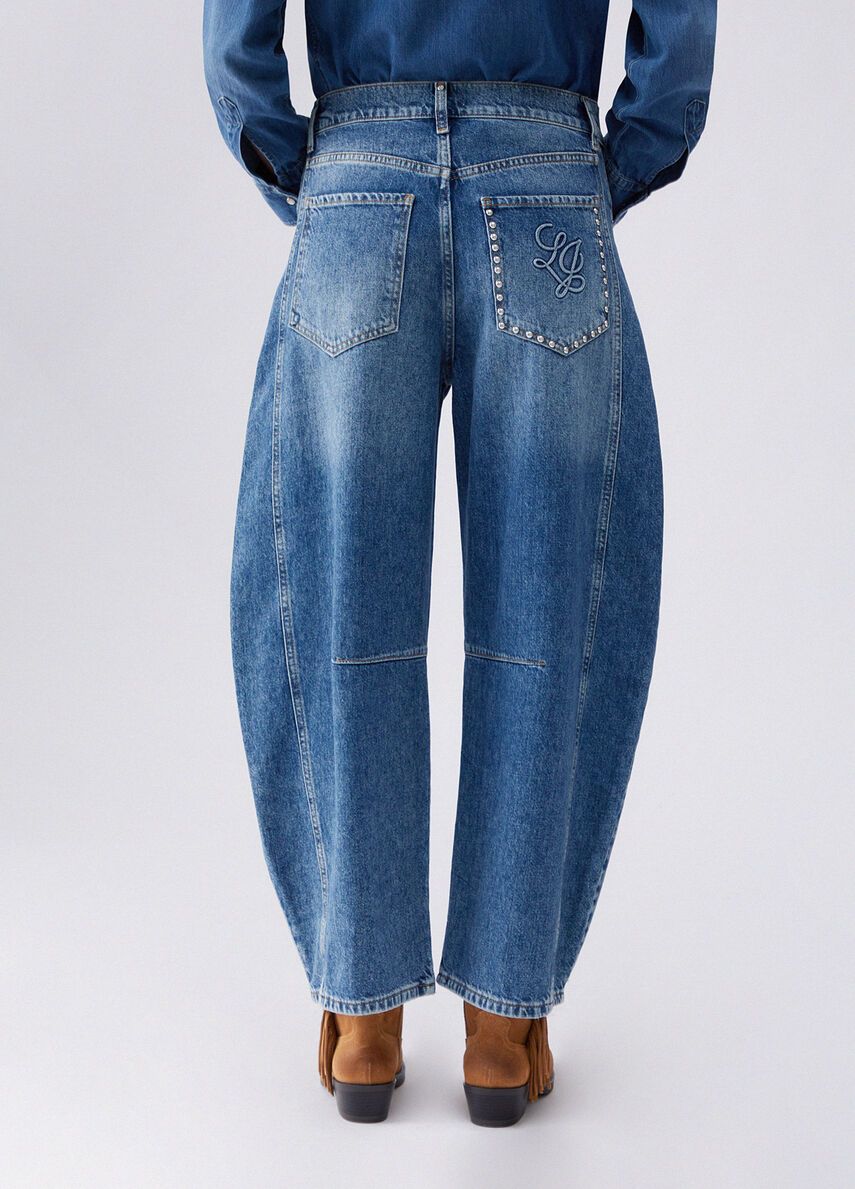 Jeans in denim no-stretchlavaggio stone bleached gamba molto ampia e asciutta sul fondo 100%co