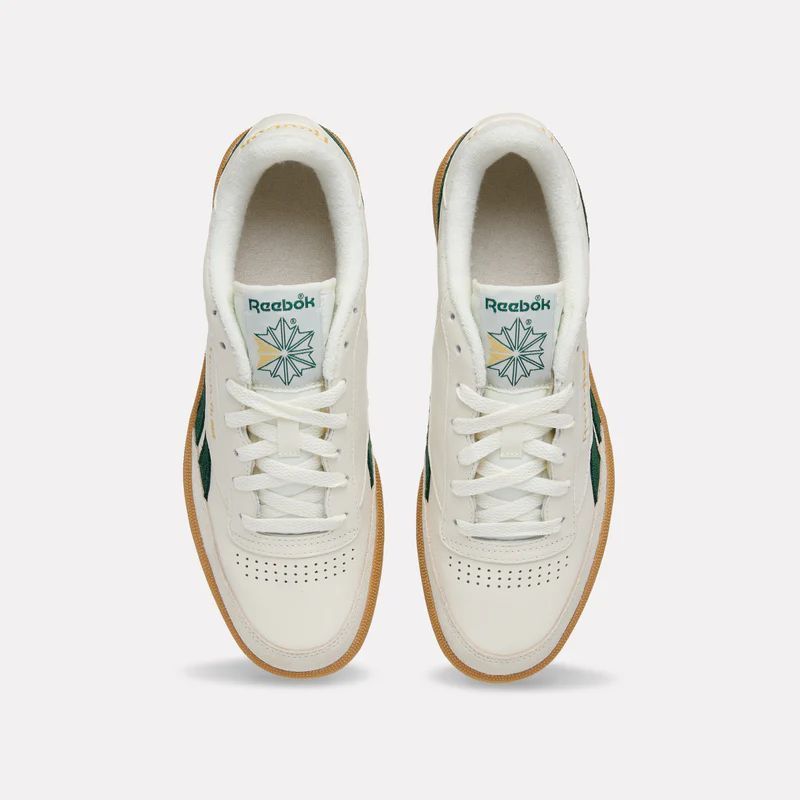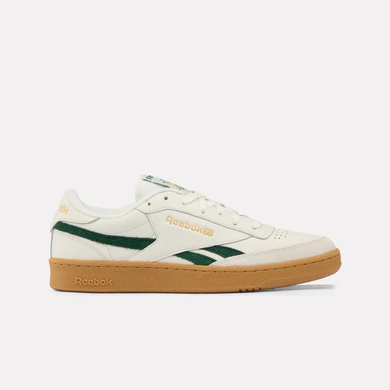 Sneaker iconica anni ’80 reebok club c revenge vintage, pelle premium chalk, dettagli verde scuro, suola gum, stile low-profile unisex