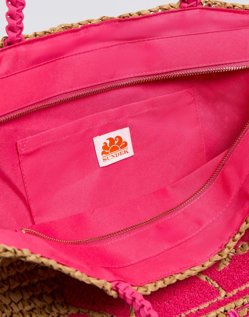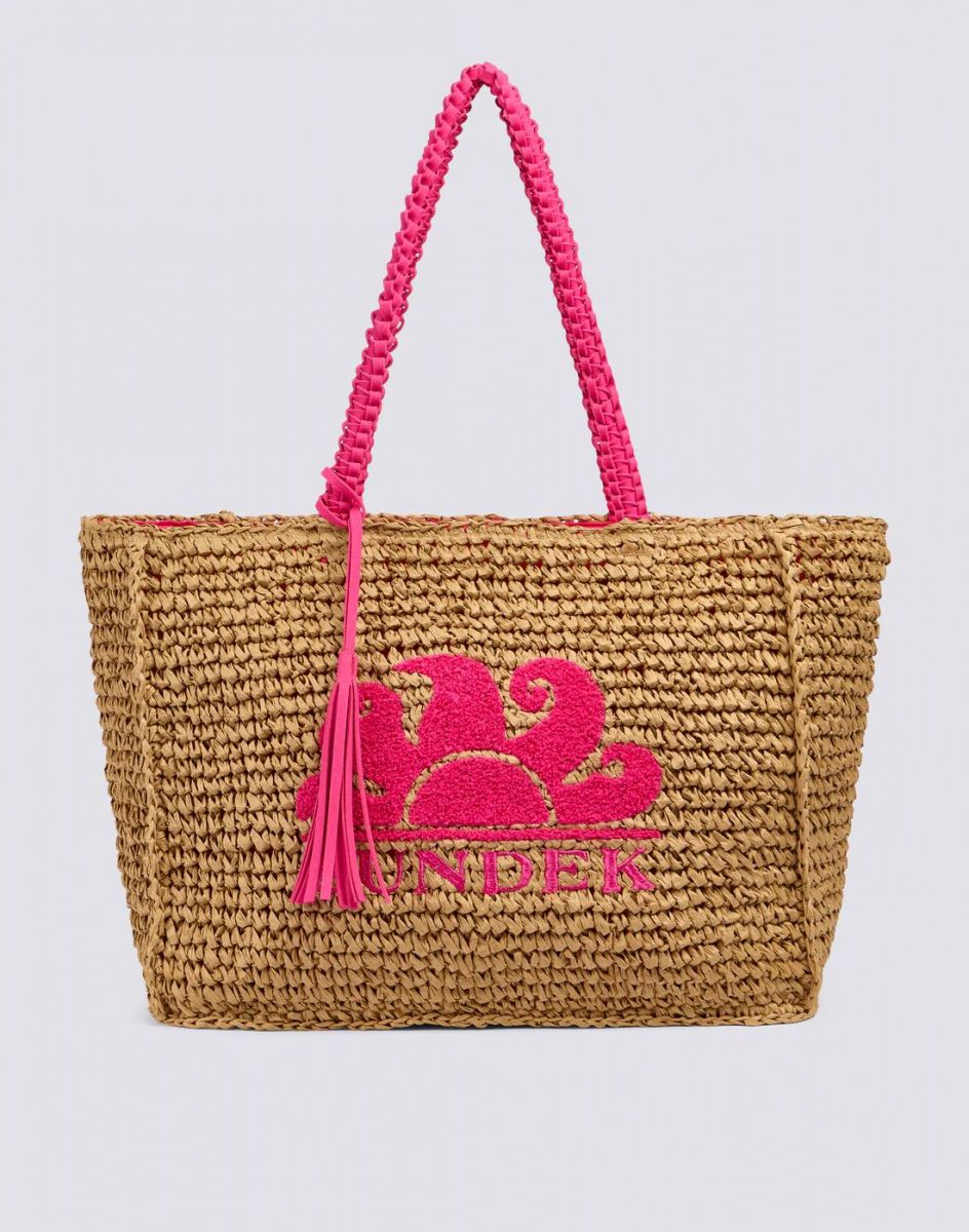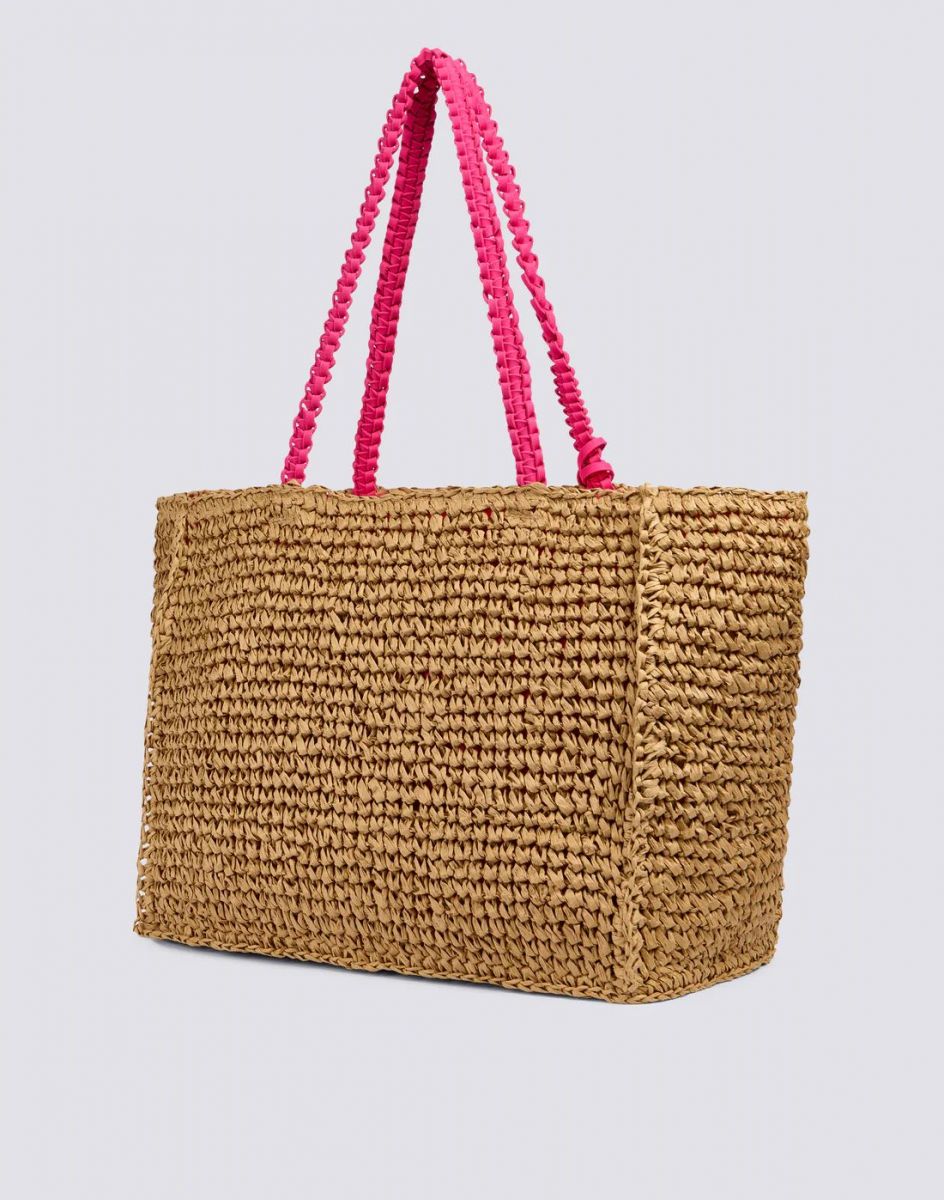 Shopping bag in paper straw logo in spugna ricamo sul fronte. Una shopping bag dal design essenziale, ma ricca di dettagli, con cui non passerai inosservata.