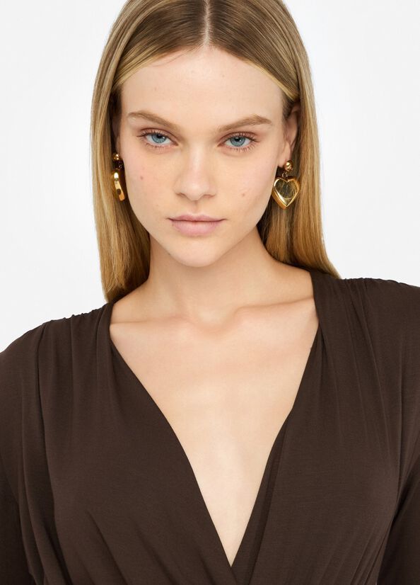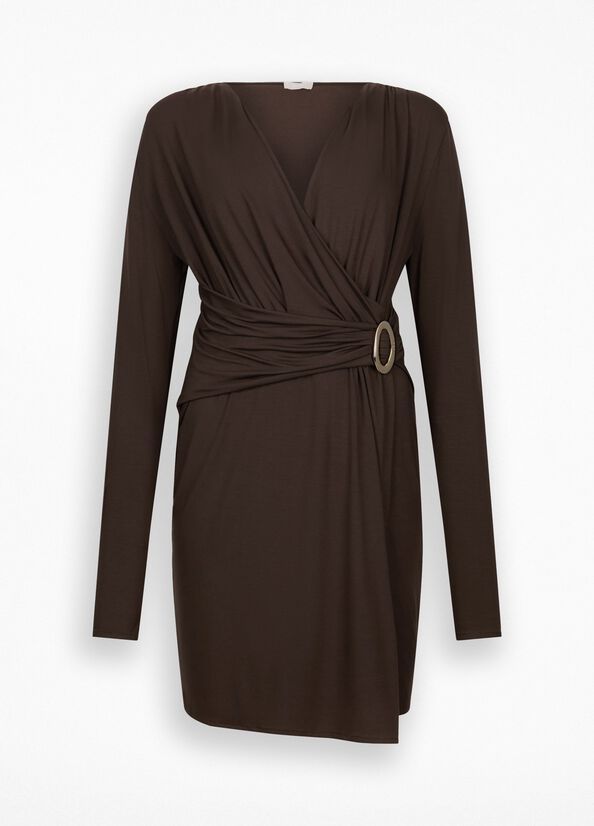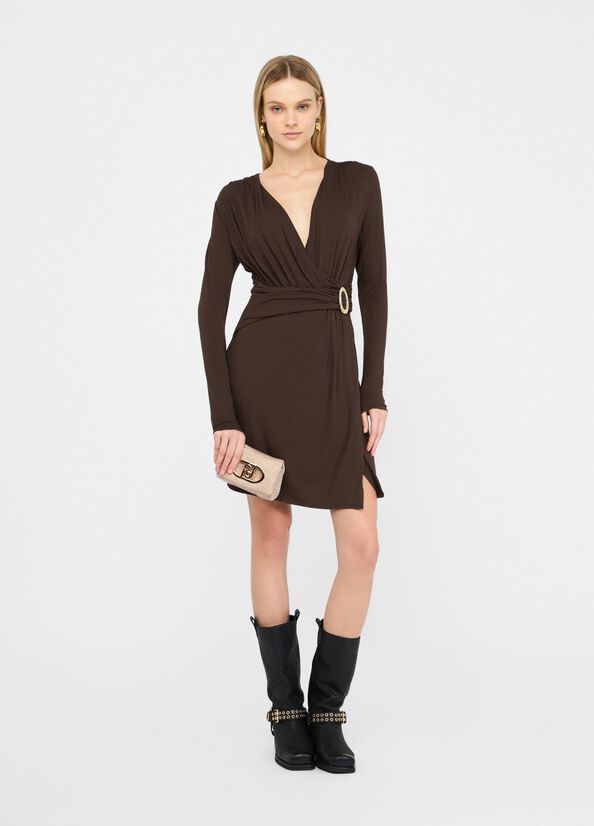 Abito corto in jersey di viscosascollo a vtessuto drappeggiatomaniche lunghe 95%vi 5%ea