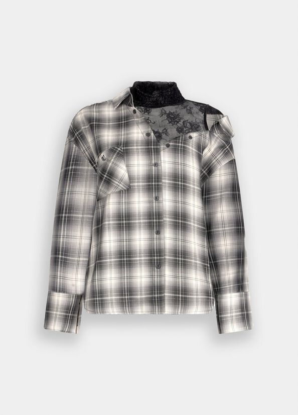 Camicia a quadri destrutturatafilati in misto viscosainterventi in lurex®tasca applicatainserto in pizzo 64%pl 35%vi 1%plm