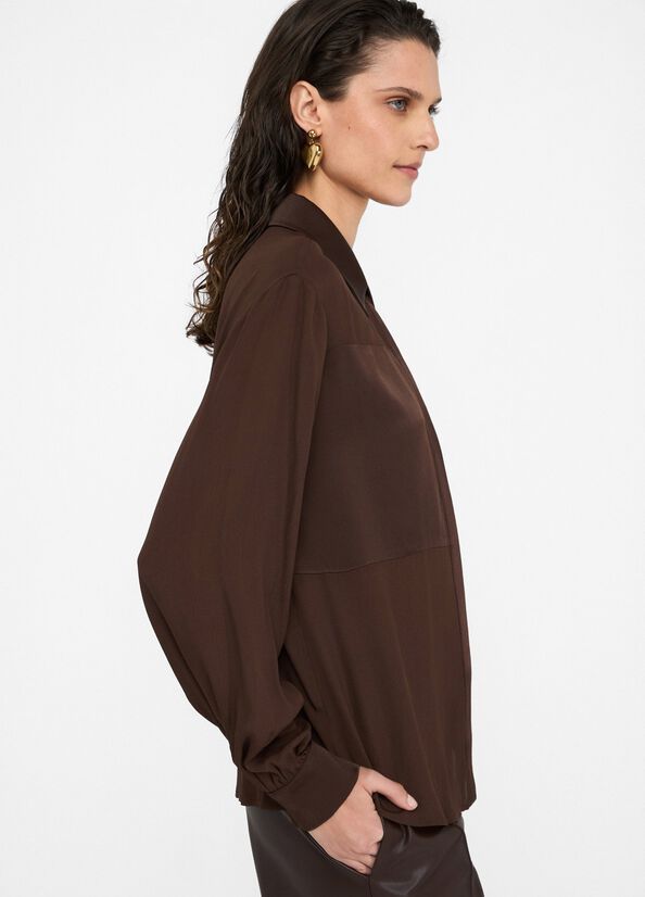 Camicia bianca in crêpe de chineinserti in raso ton sur tonchiusura con bottoni nascosti 100%vi