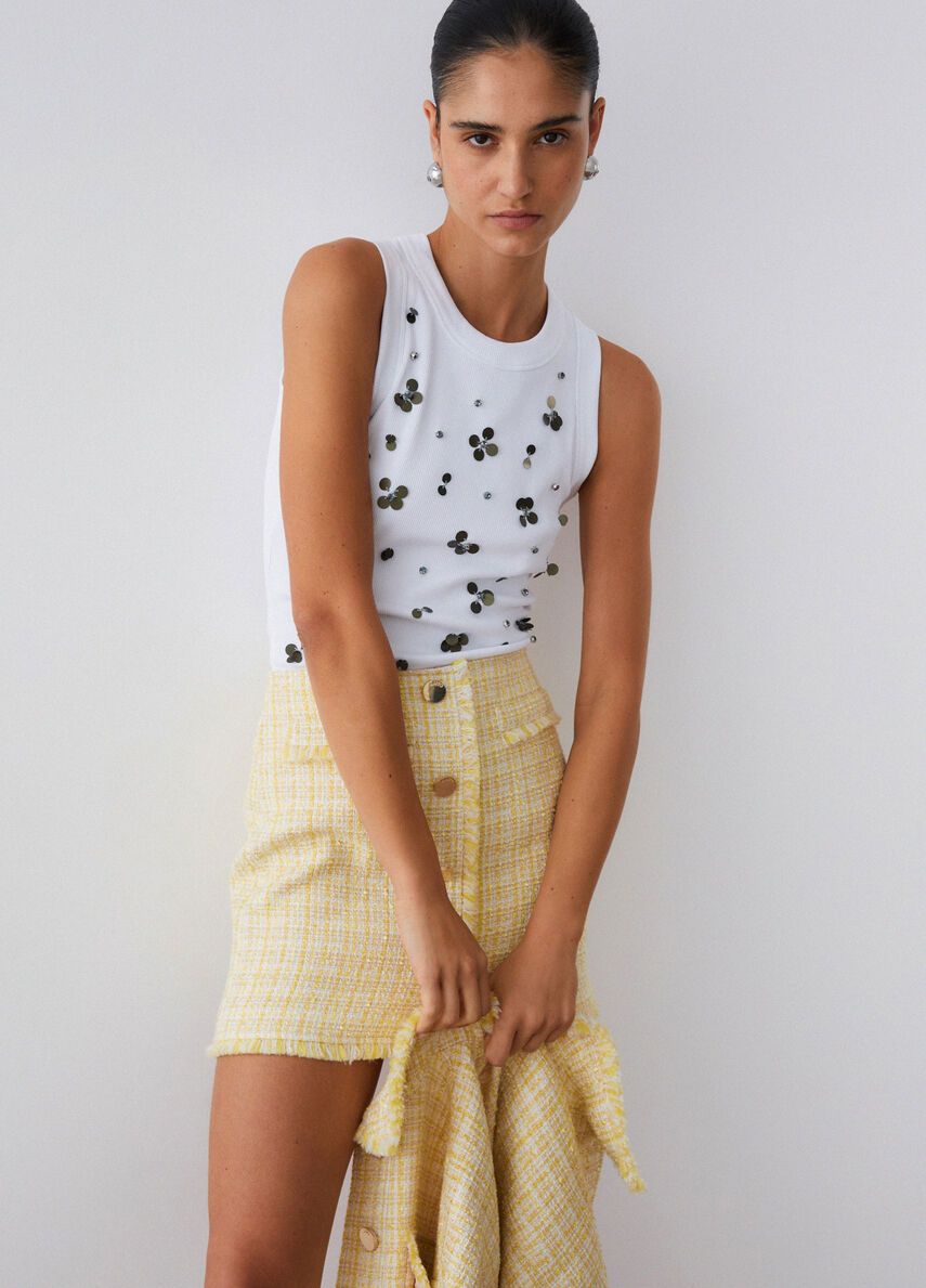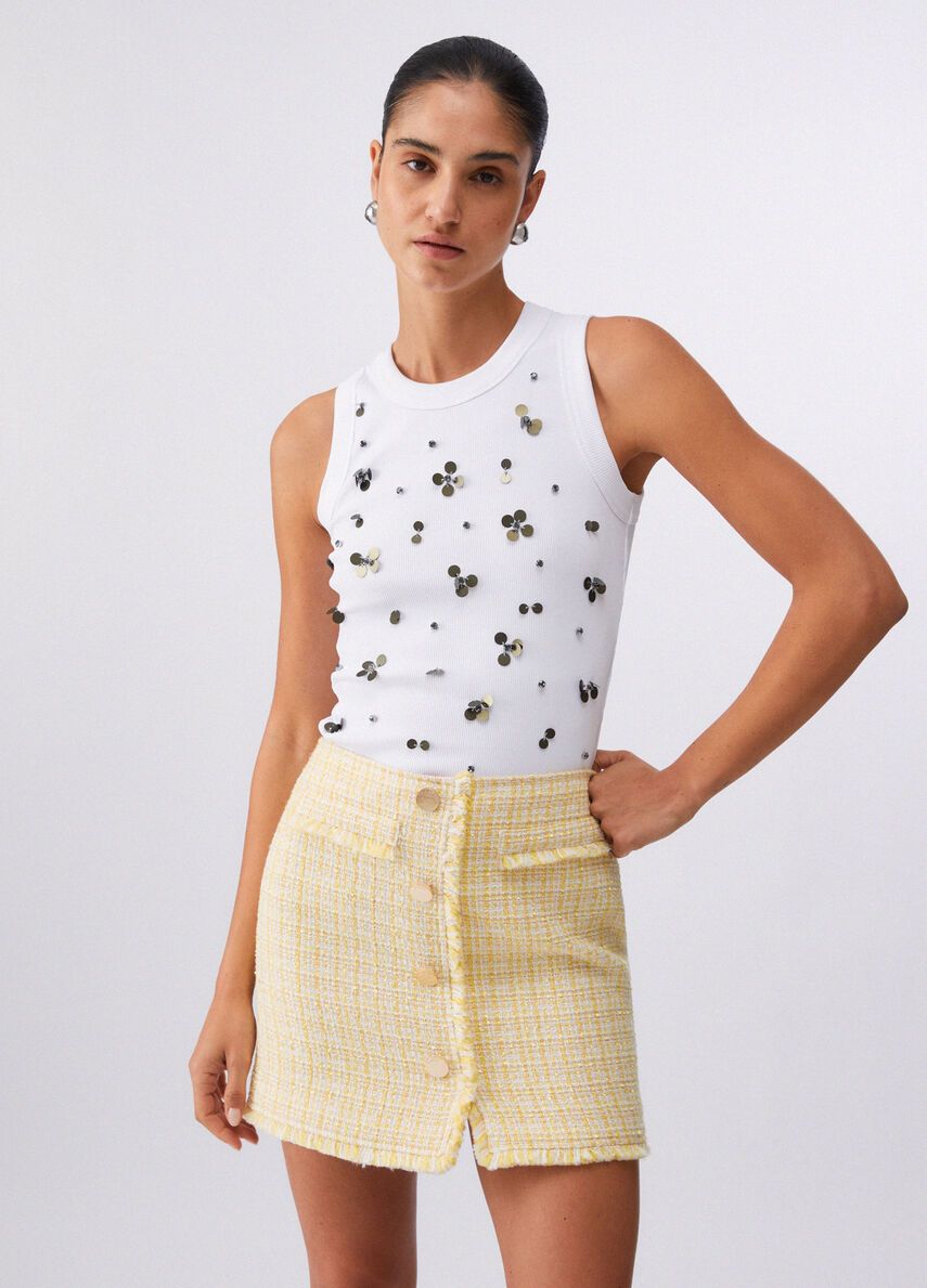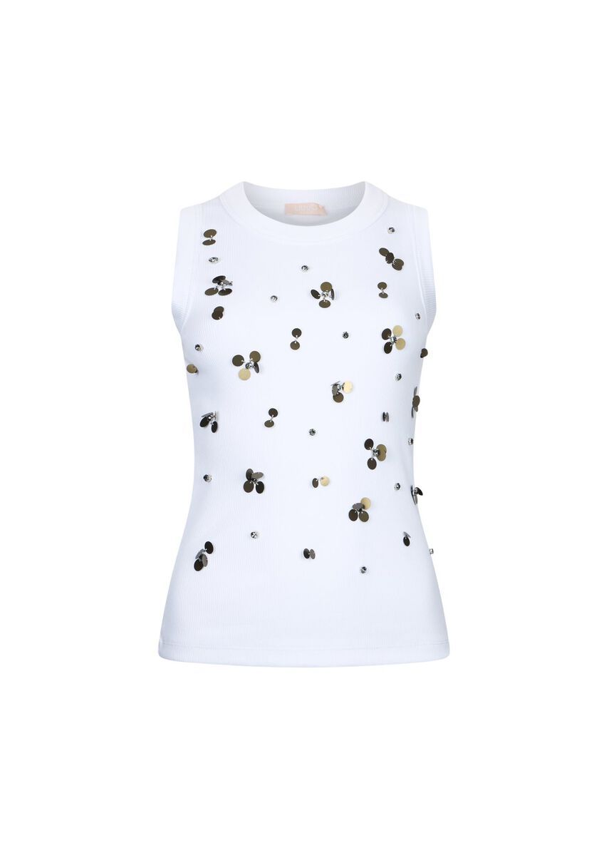 Top in cotone stretchlavorazione a costeapplicazioni gioiello sul davantigirocollo 95%co 5%ea