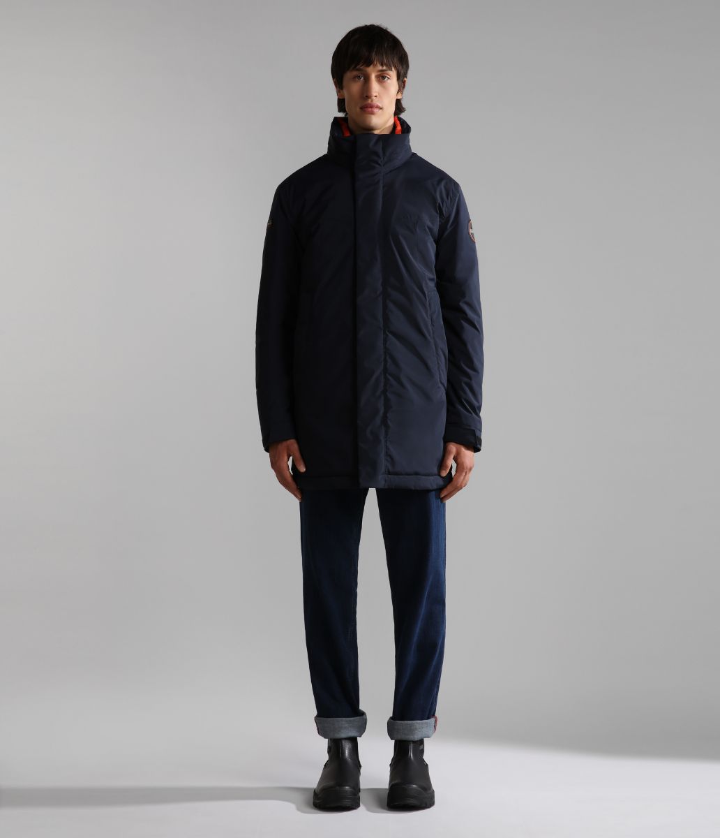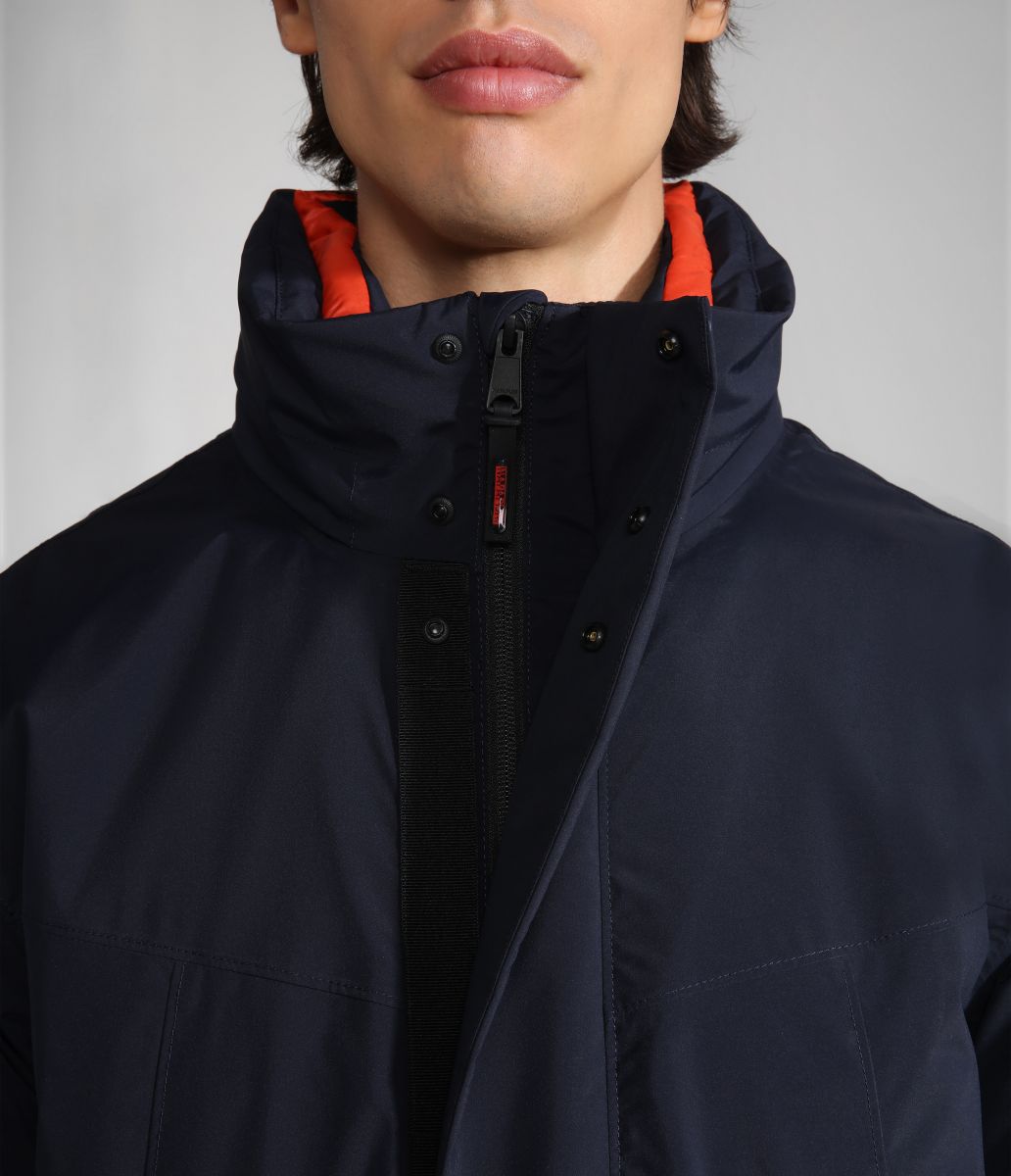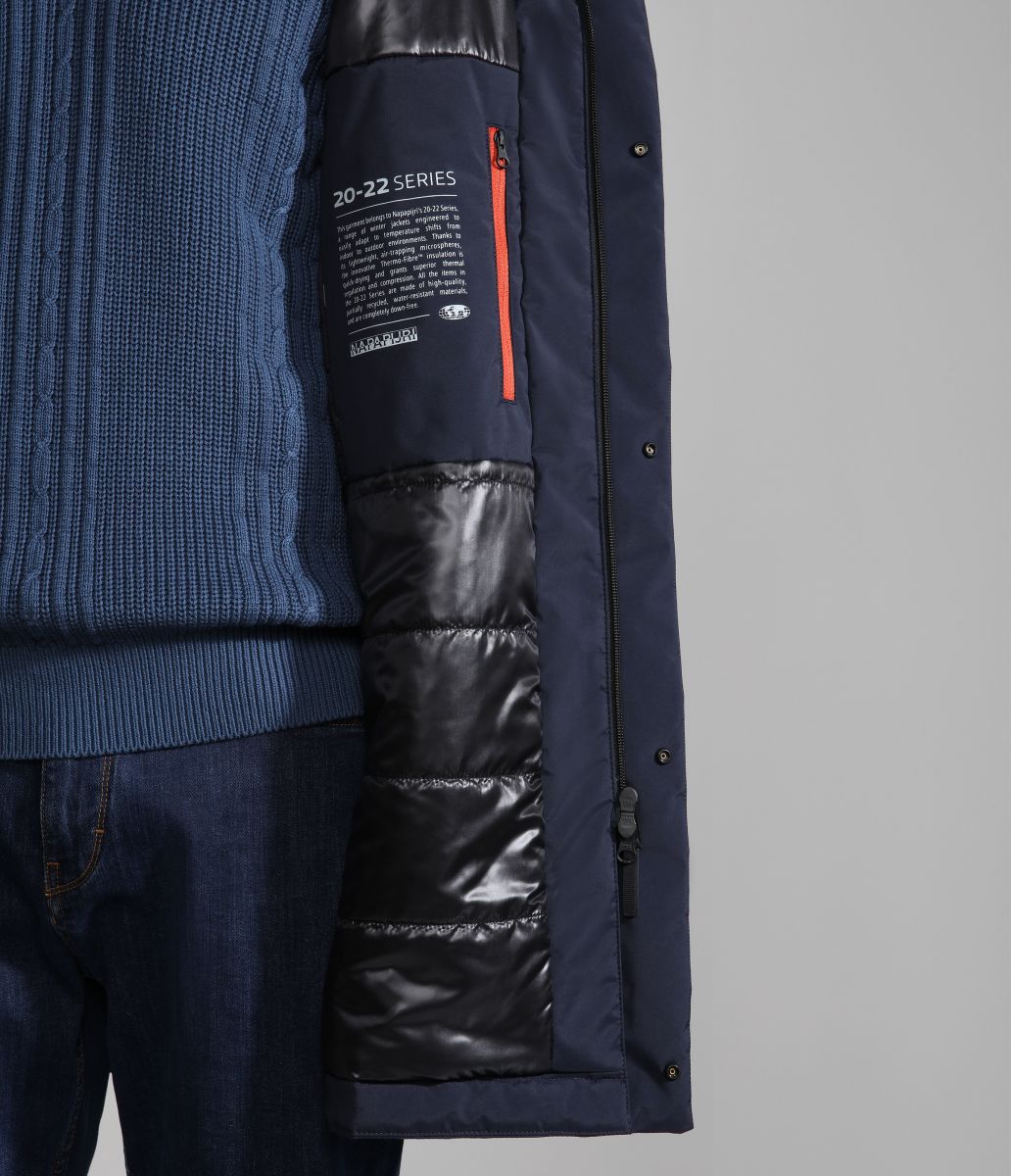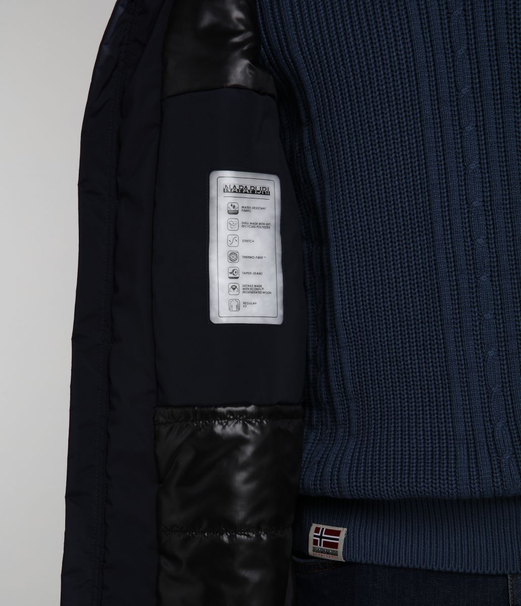 Must-have per il guardaroba invernale, la giacca media Romer è leggera, versatile e perfetta per qualsiasi avventura all’aperto. Ultra comoda grazie al sistema isolante down-free Thermo-Fibre™ riciclato, presenta una chiusura con zip bidirezionale, cuciture nastrate nei punti critici e dettagli Napapijri rifrangenti, unendo stile disinvolto e funzionalità.Must-have per il guardaroba invernale, la giacca media Romer è leggera, versatile e perfetta per qualsiasi avventura all’aperto. Ultra comoda grazie al sistema isolante down-free Thermo-Fibre™ riciclato, presenta una chiusura con zip bidirezionale, cuciture nastrate nei punti critici e dettagli Napapijri rifrangenti, unendo stile disinvolto e funzionalità. Giacca media Mix di materiali Chiusura con zip bidirezionale e bottoni Cappuccio fisso facile da riporre Tasche a filetto con chiusura con zip Polsini regolabili Cuciture nastrate nei punti critici Tasca interna con zip Sistema isolante con imbottitura down-free Thermo-Fibre™ riciclata Dettagli stampati Stemma Dettagli stampati rifrangenti