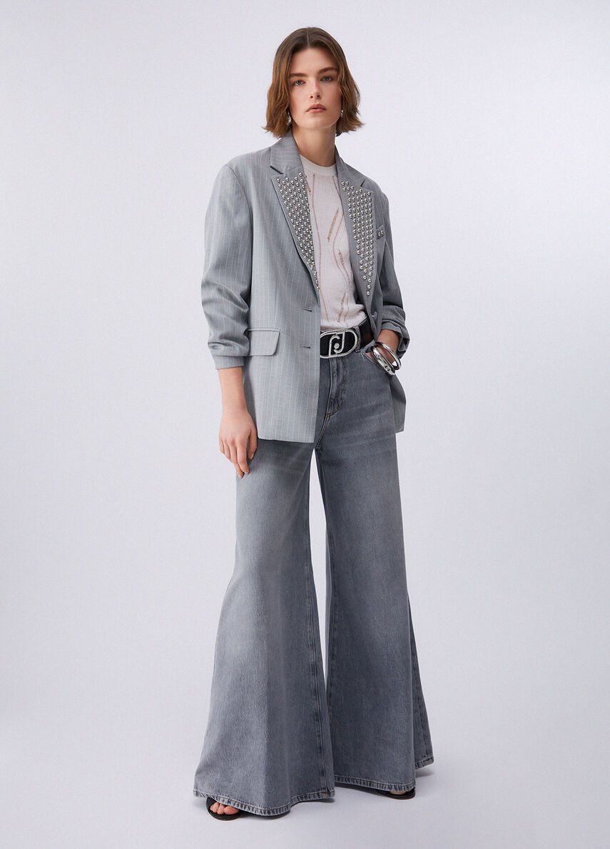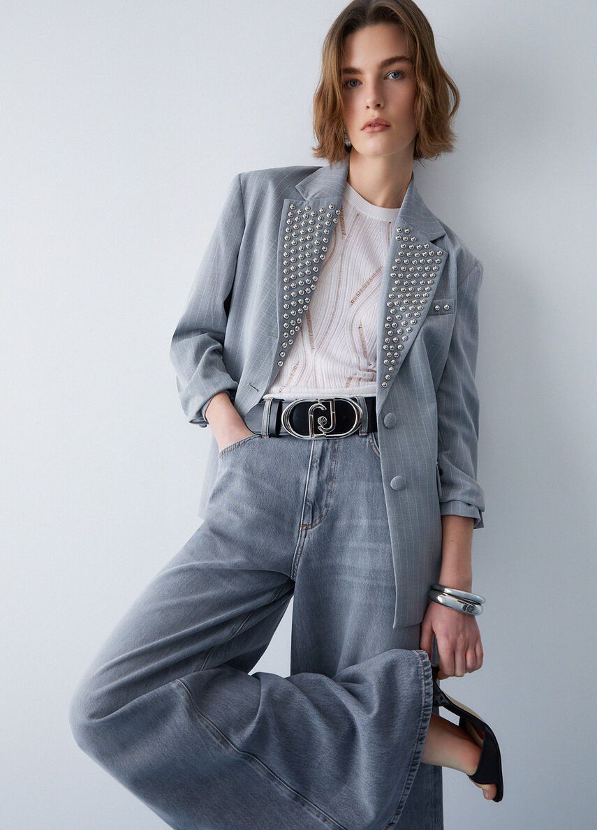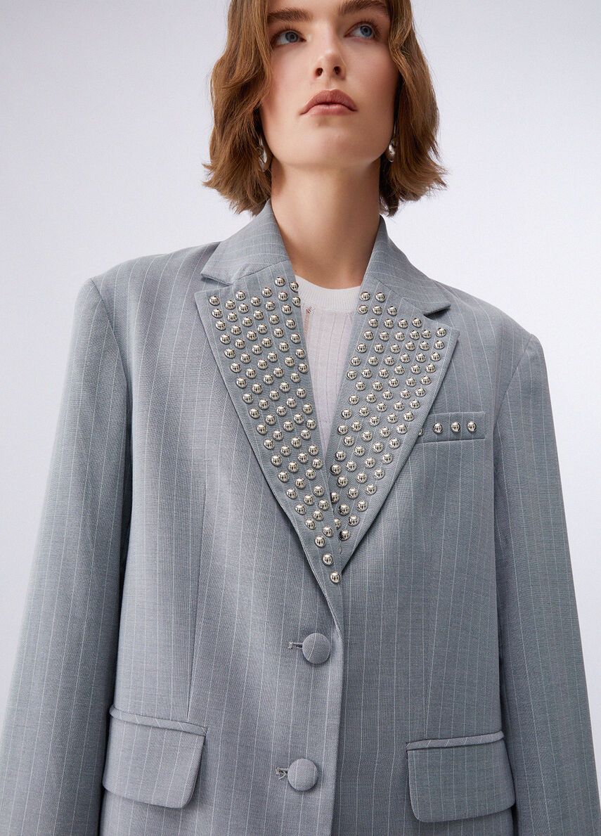 Blazer gessato regular fitrevers con borchie applicatetasca a filetto sul pettotasche con pattachiusura a due bottoni 82%pl 16%vi 2%ea