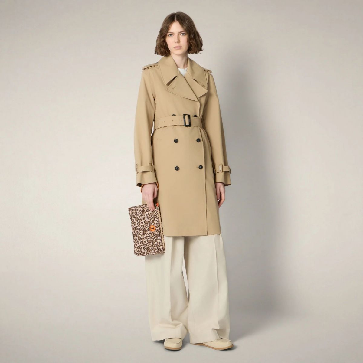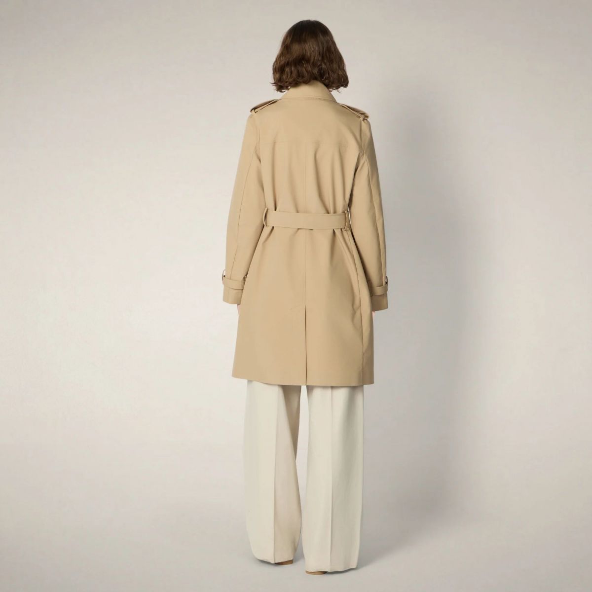 Il trench antipioggia da donna modello Talya ha una silhouette asciutta e pronta al meteo, realizzata in tessuto water-resistant con cuciture completamente nastrate. I codici classici del raincoat all'inglese—taglio doppiopetto, cintura regolabile in vita e linguette ai polsi—disegnano una linea femminile e attuale. Completano il design i bottoni con logo inciso e il badge sulla manica, inconfondibile firme Save The Duck. 100% recycled polyester 3-layer fabric with a matte finish. Lightweight and robust, thanks to the laminate it guarantees water resistance (10000 mm/H2O), breathability (3000 g/m²/24h) and wind protection.
