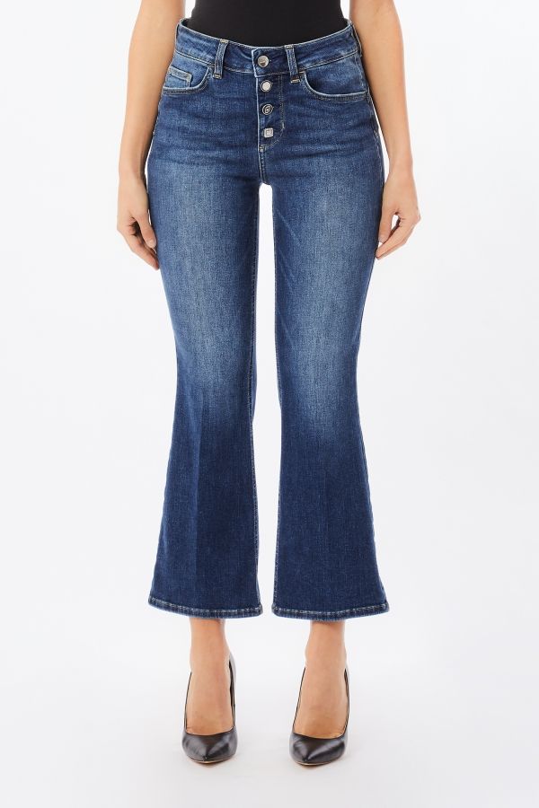Jeans flare in denim di cotonetagli bottom up che ridefiniscono le forme con eleganza, donando armonia e sostegno senza rinunciare al comfort 92%co 6%eme 2%ea