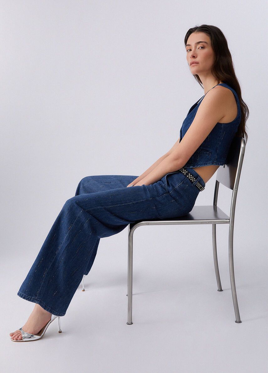Jeans in denim stretchlavaggio stonewash con baffi e graffiaturetasche alla francese davanti full strass 80%co 20%li