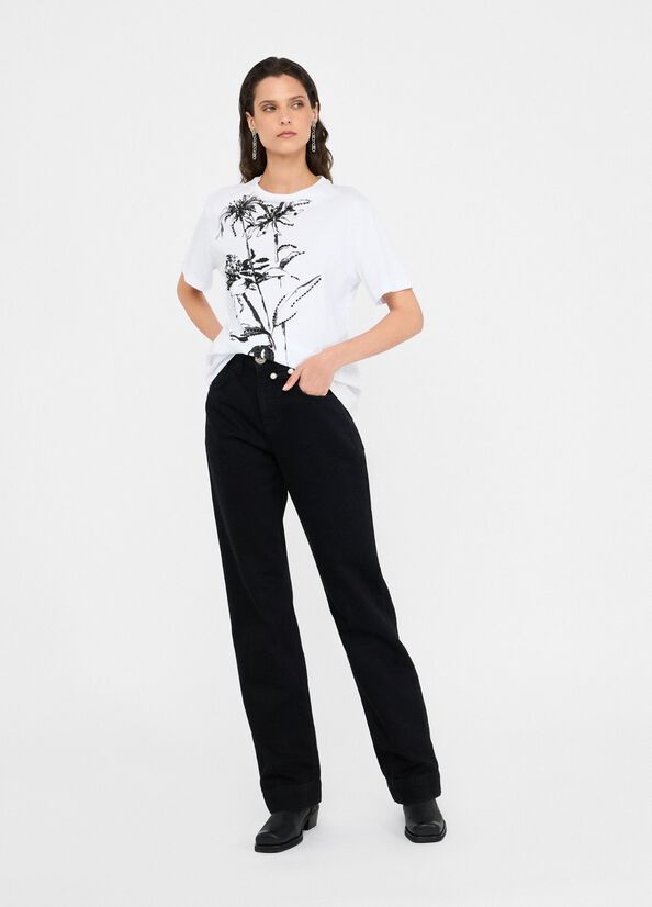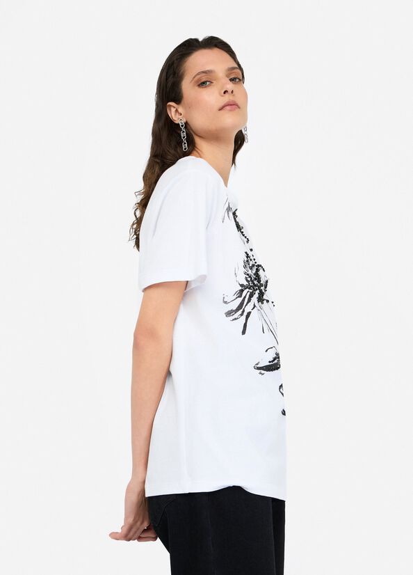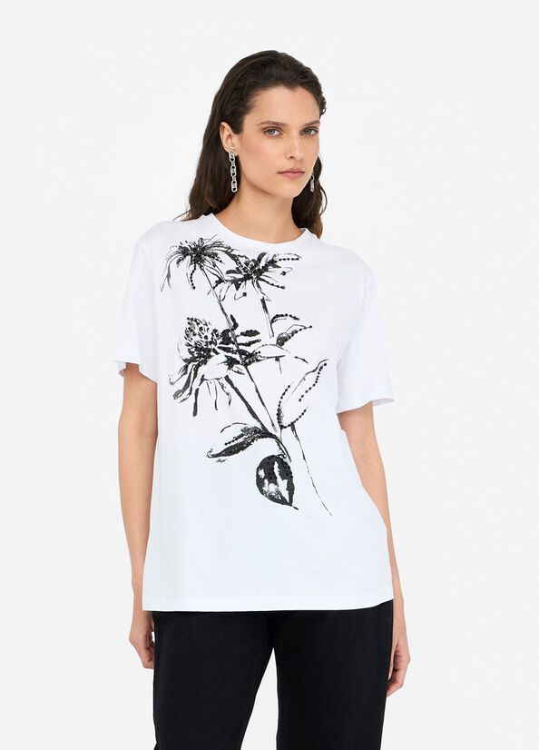 T-shirt in jersey di cotonevestibilità overstampa floreale con strass 100%co
