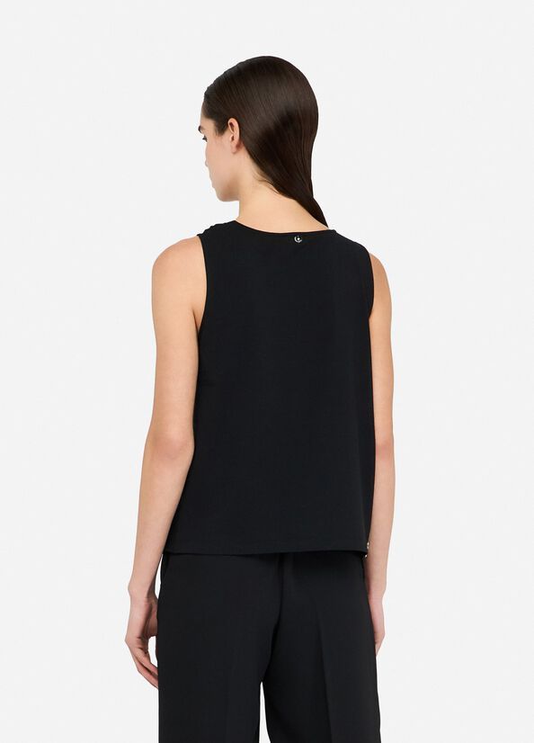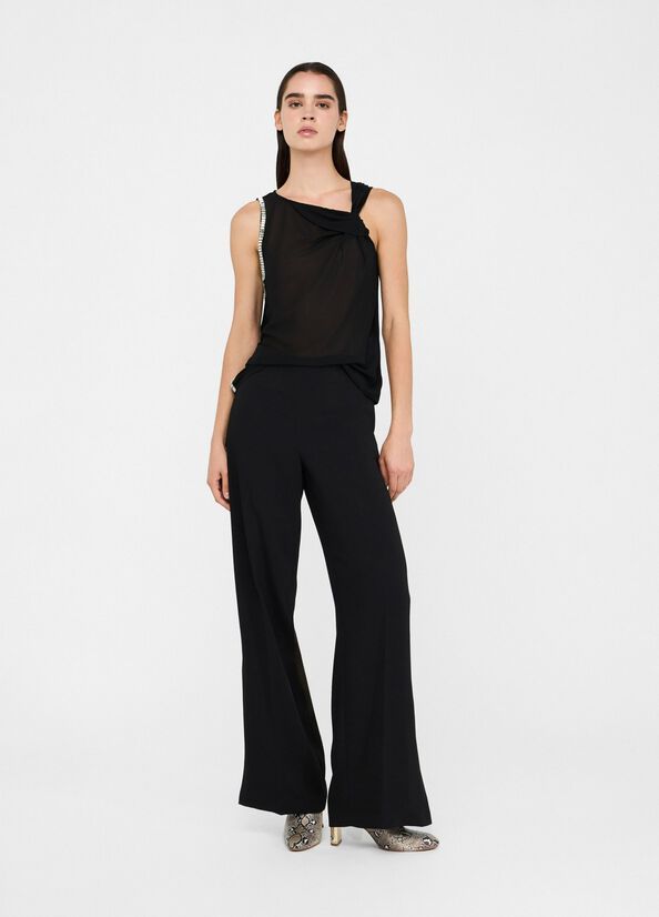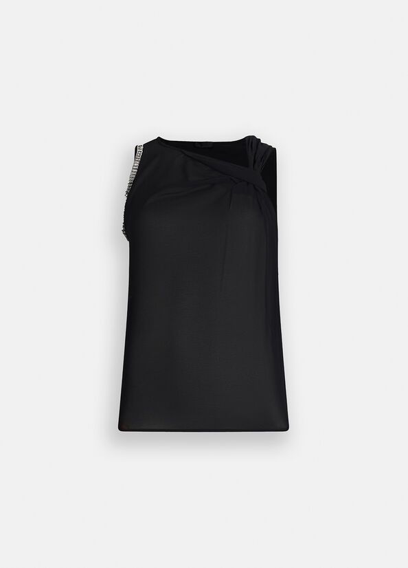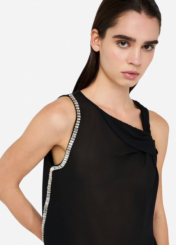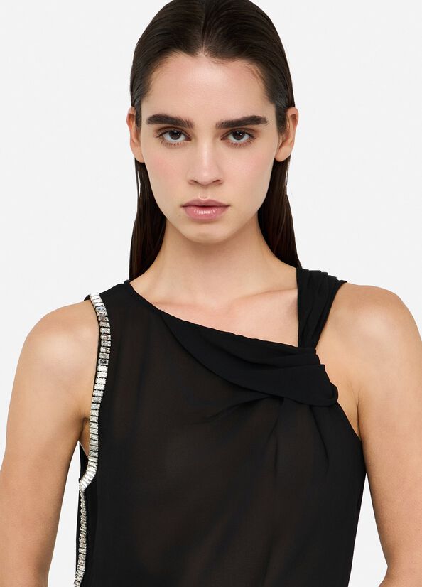 Top in jersey di cotone stretch e georgettestrass applicatiscollo con motivo nodosorretto da spalline 95%co 5%ea