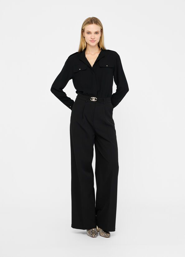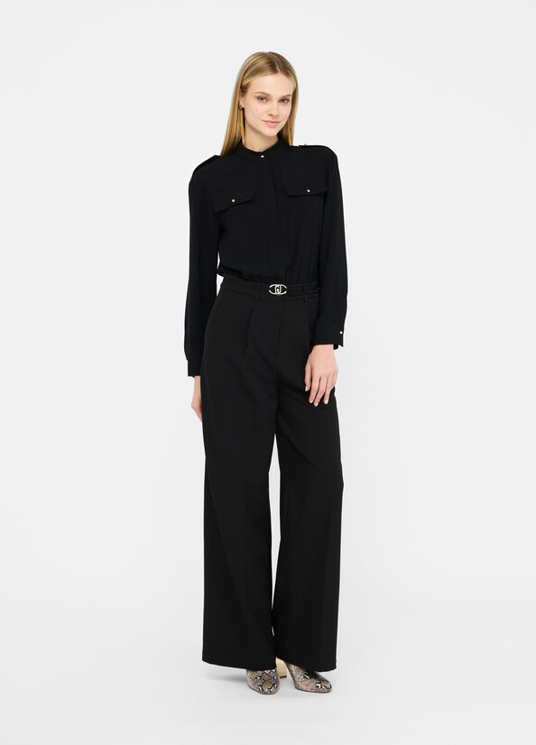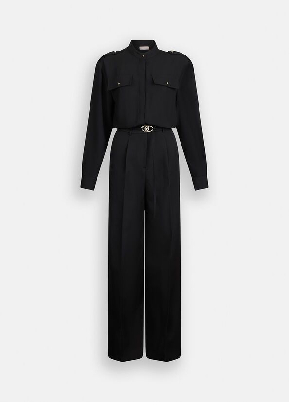 Tuta da donnacamicia in crêpecolletto alla coreanafinte tasche 88%pl 12%ea