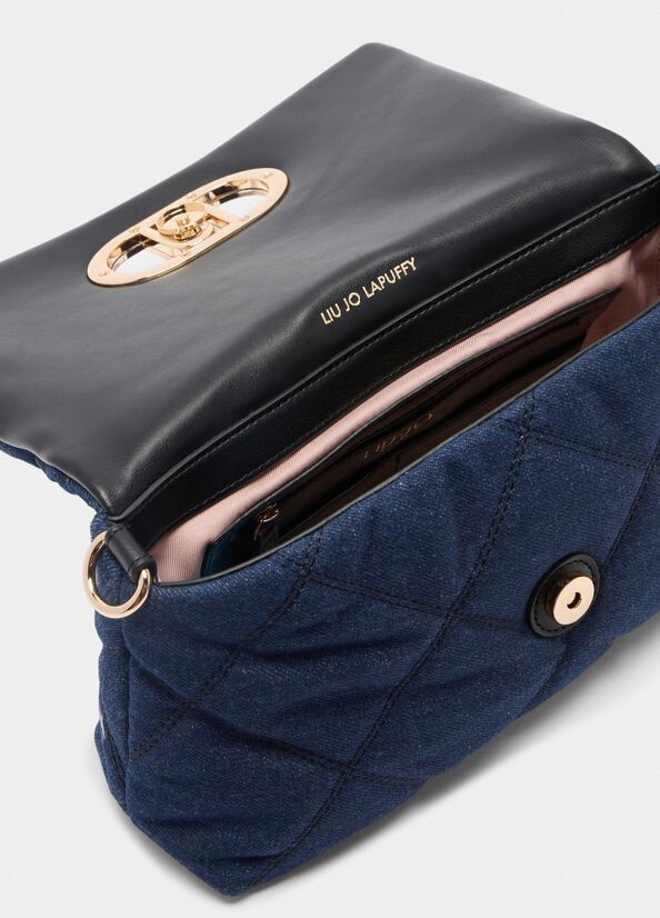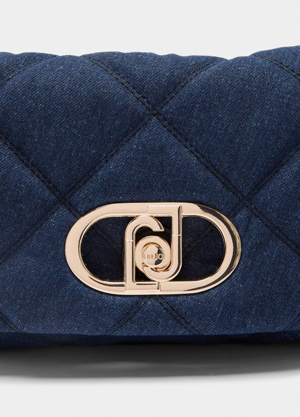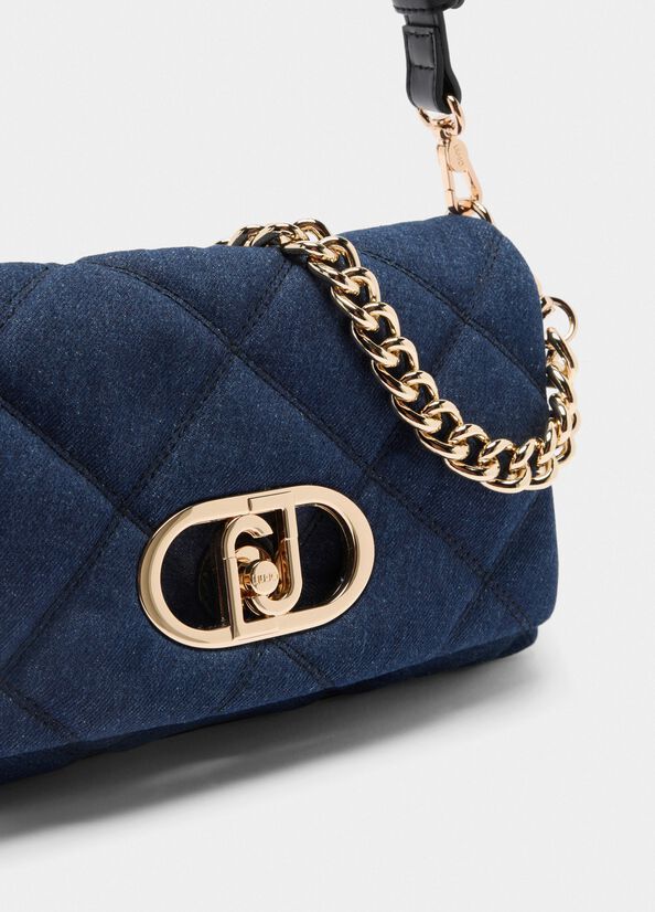 Misure: 28 x 8 x 16 cmborsa a spalla lapuffy in denim matelassélogo in metallocomodo manico a catena rimovibile 70%co 30%pl