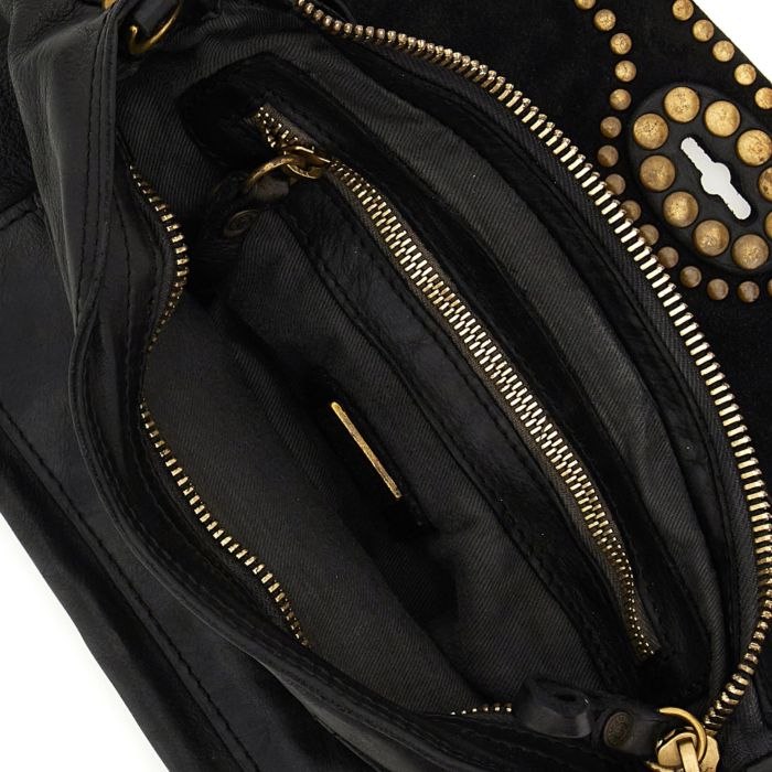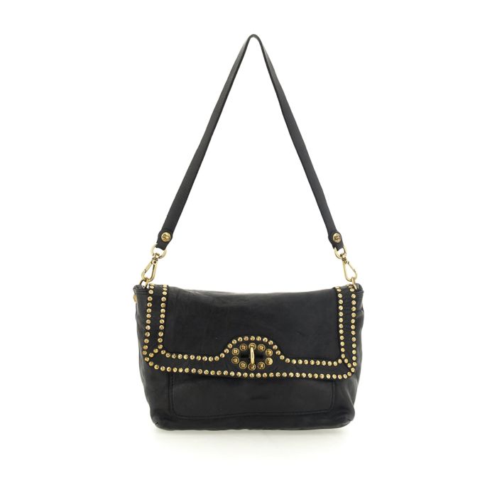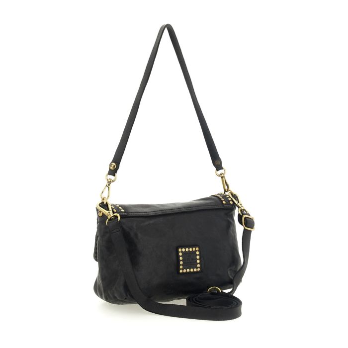 Tracolla piccola pelle vacchetta tinto capo + rivetti 25x12x17 100%pelle
