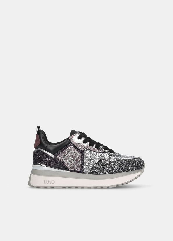 Sneakers con tomaia full glitterinserti in suede ed effetto laminatologo lj metallico applicato sul latobattistrada dentellatoaltezza suola 4,5 cm