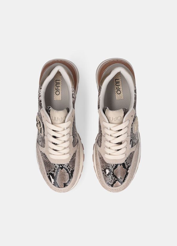 Sneakers con tomaia in suede e stampa pitonestrass applicati su punta e tallonepatch con logo lj applicatoinserto laminato sul tallone